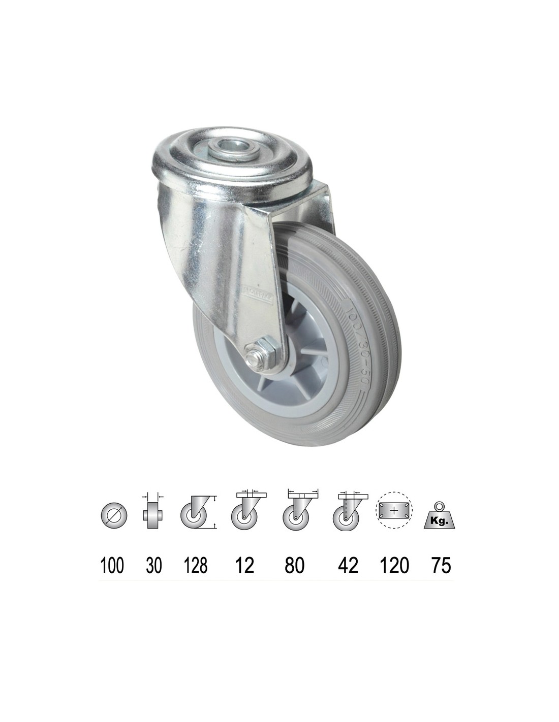 Rueda Industrial Goma Gris Pasante 100 mm.