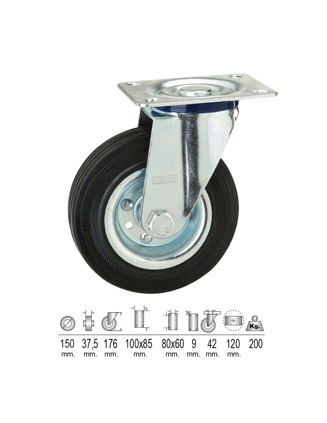 Rueda Industrial Goma Negra Placa Ø 140 mm.