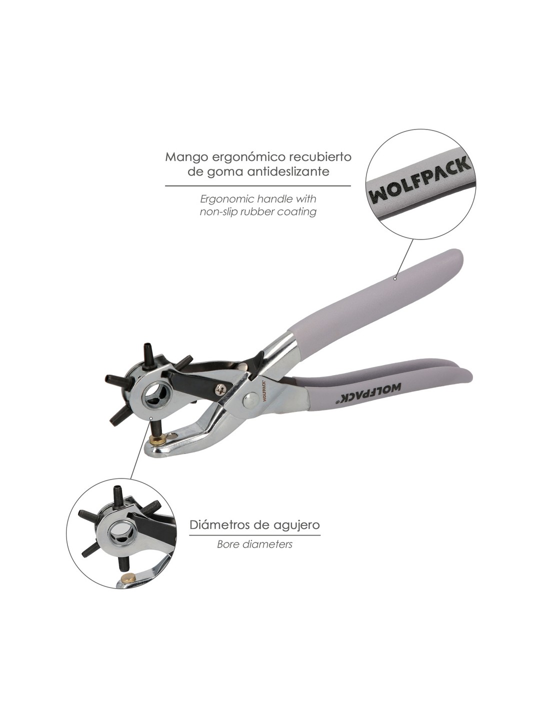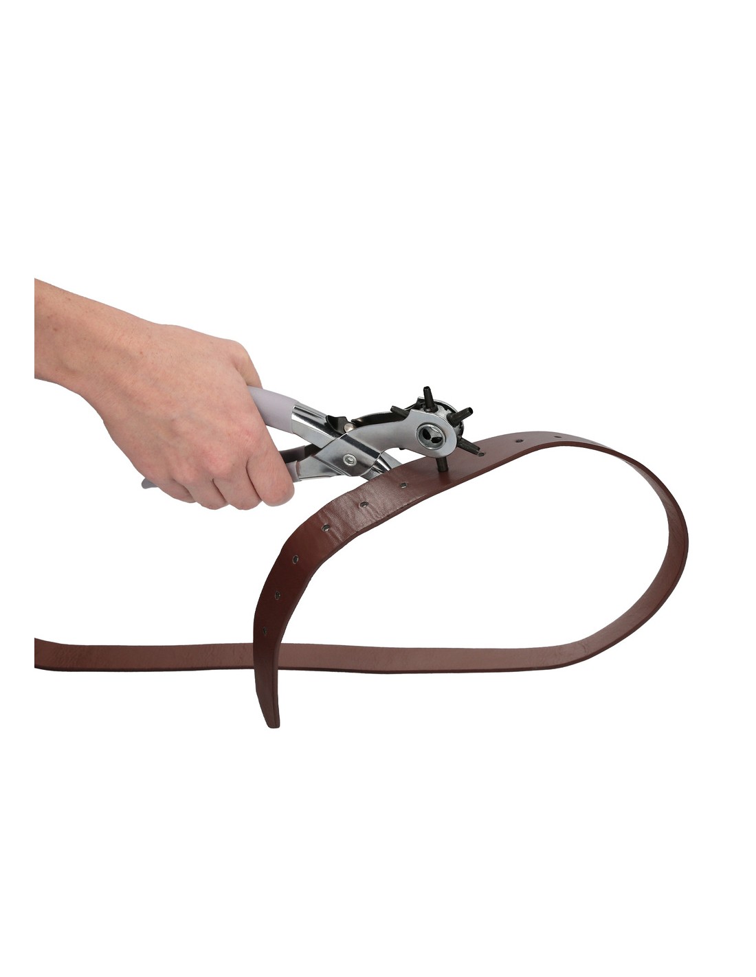 - Ideal para perforar agujeros limpios en cuero, materiales suaves, plástico, lona, tela, cinturones, zapatos, etc.