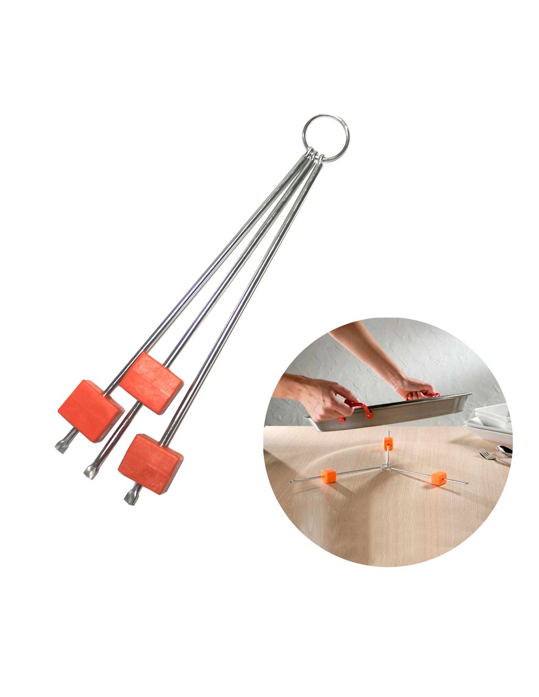 Salvamanteles Regulable - Medida: Ø 10 / 70 cm. - Se puede adaptar a la medida deseada gracias a sus 3 puntos de apoyo. - Ideal para recipientes grandes, especialmente paelleros, sartenes, ollas , cazos, etc.