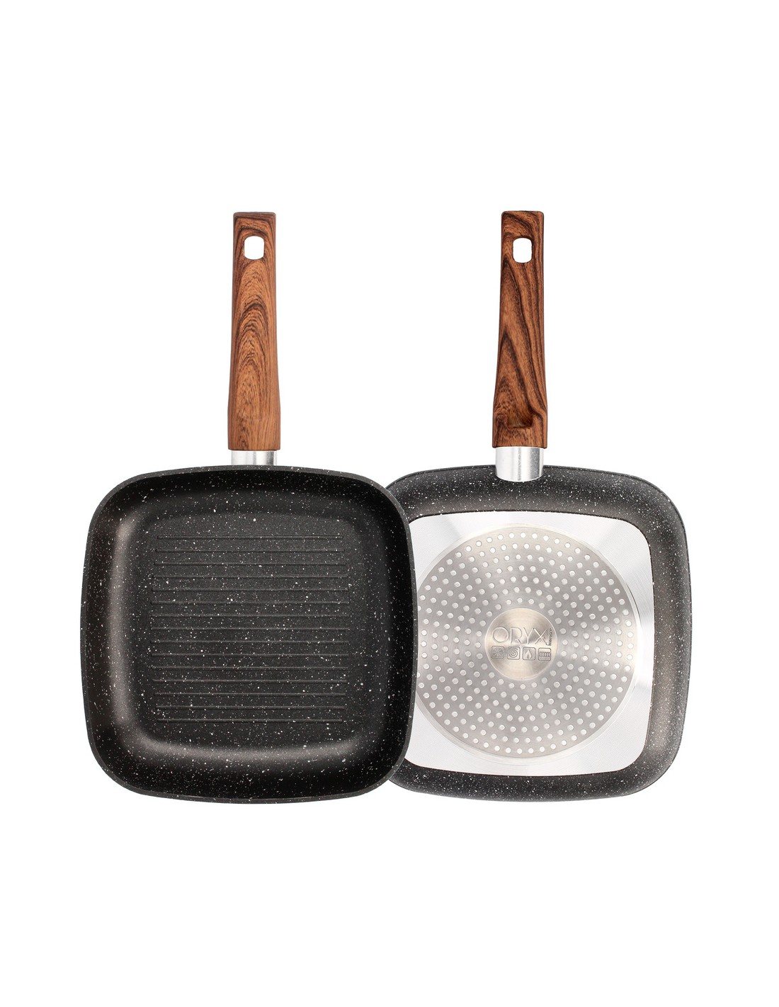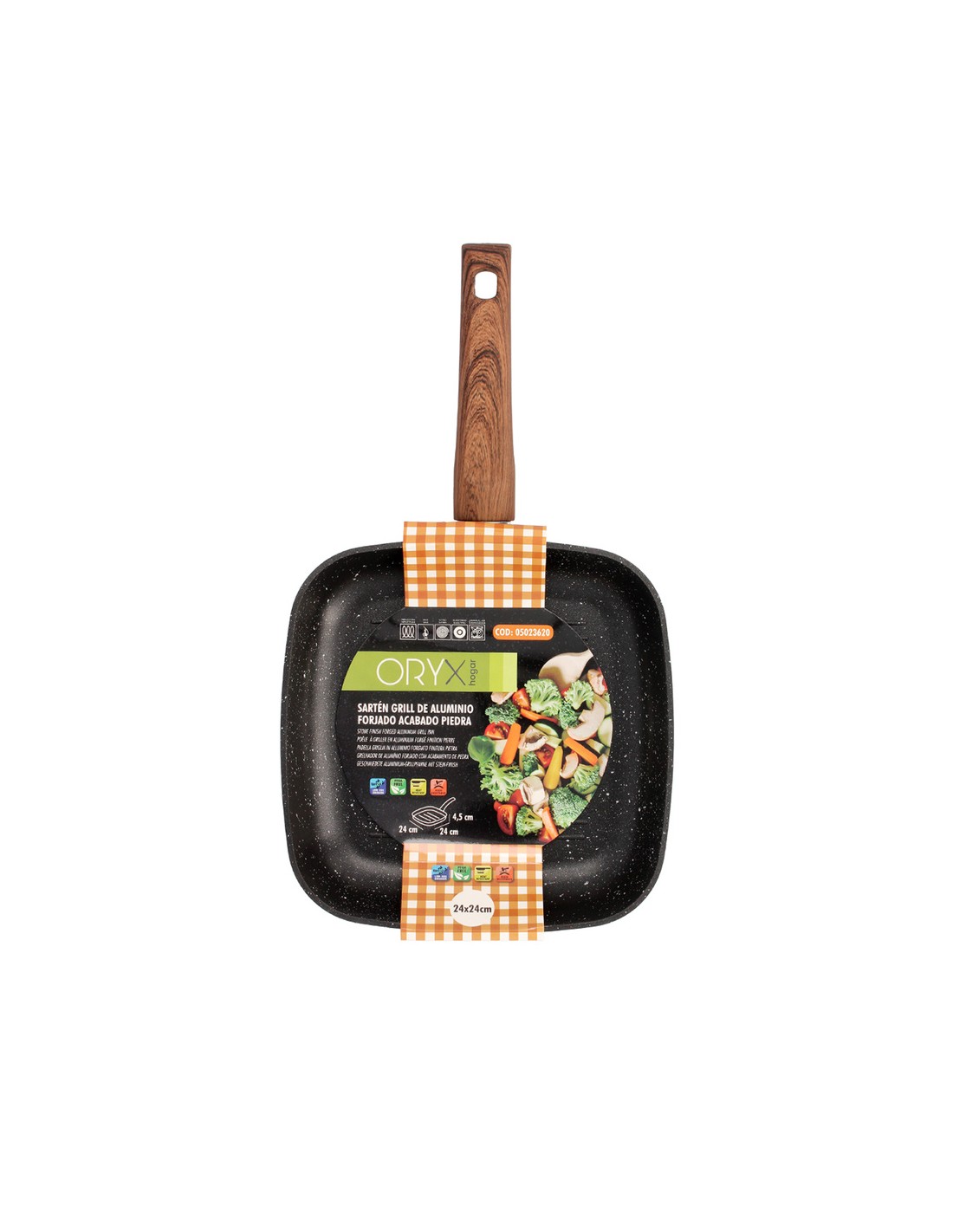 Sarten Aluminio Forjado Antiadherente 24x24x4,5 cm. Mango Engomado / 5 capas / Acabado Piedra / Todo Tipo de Cocinas / Grill