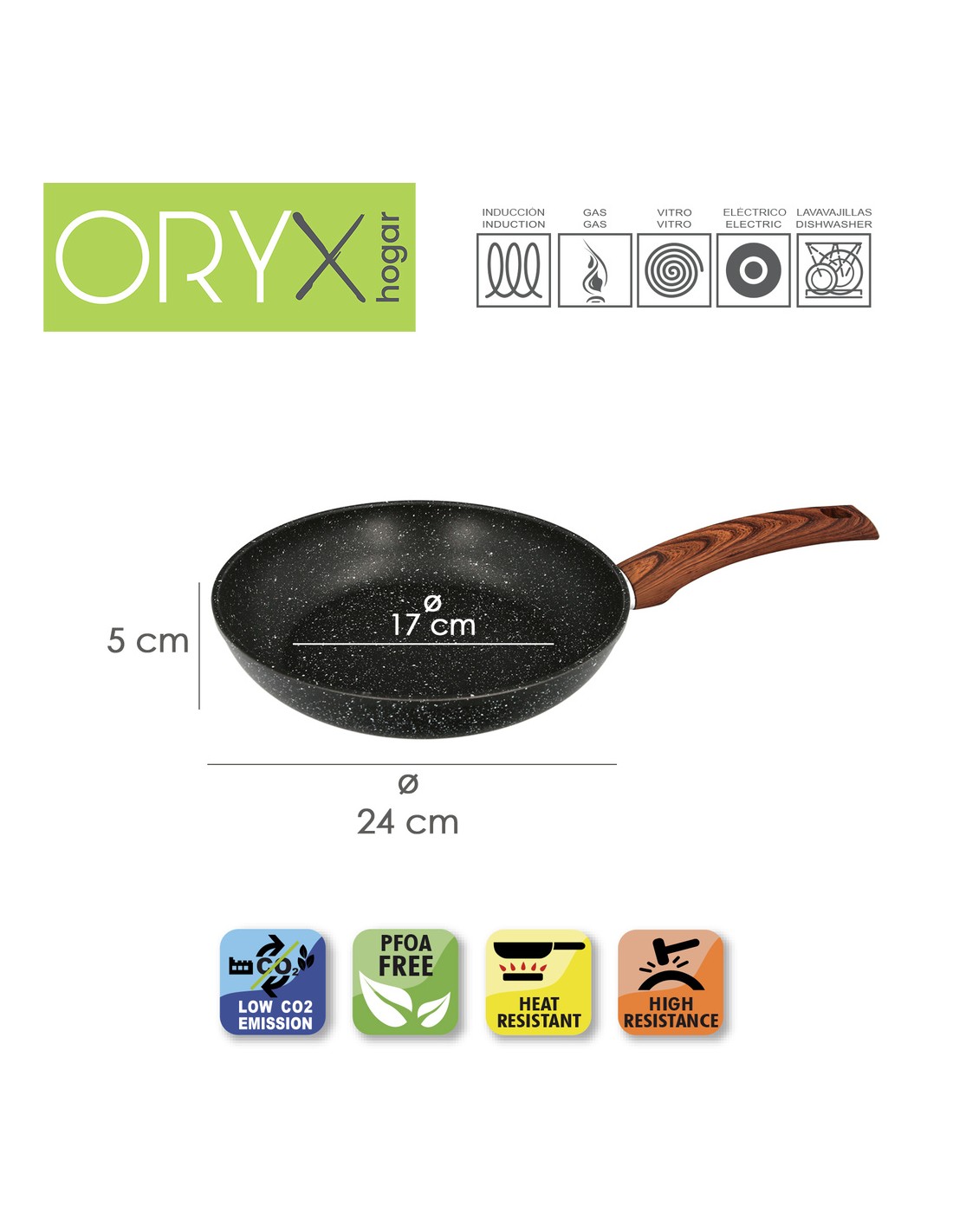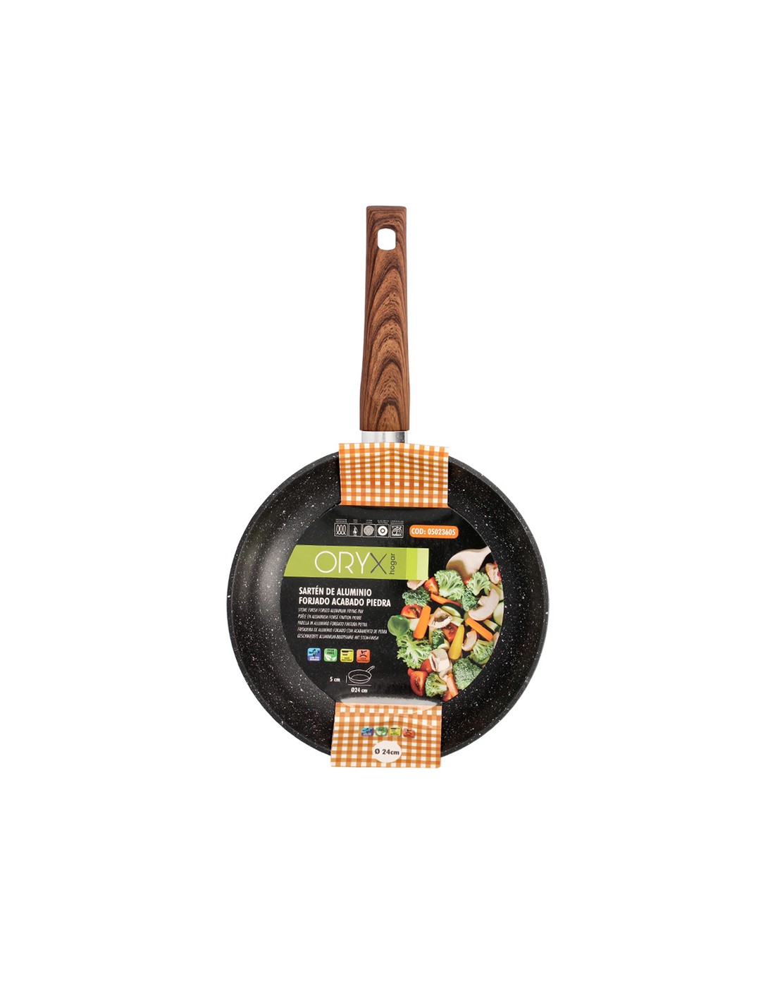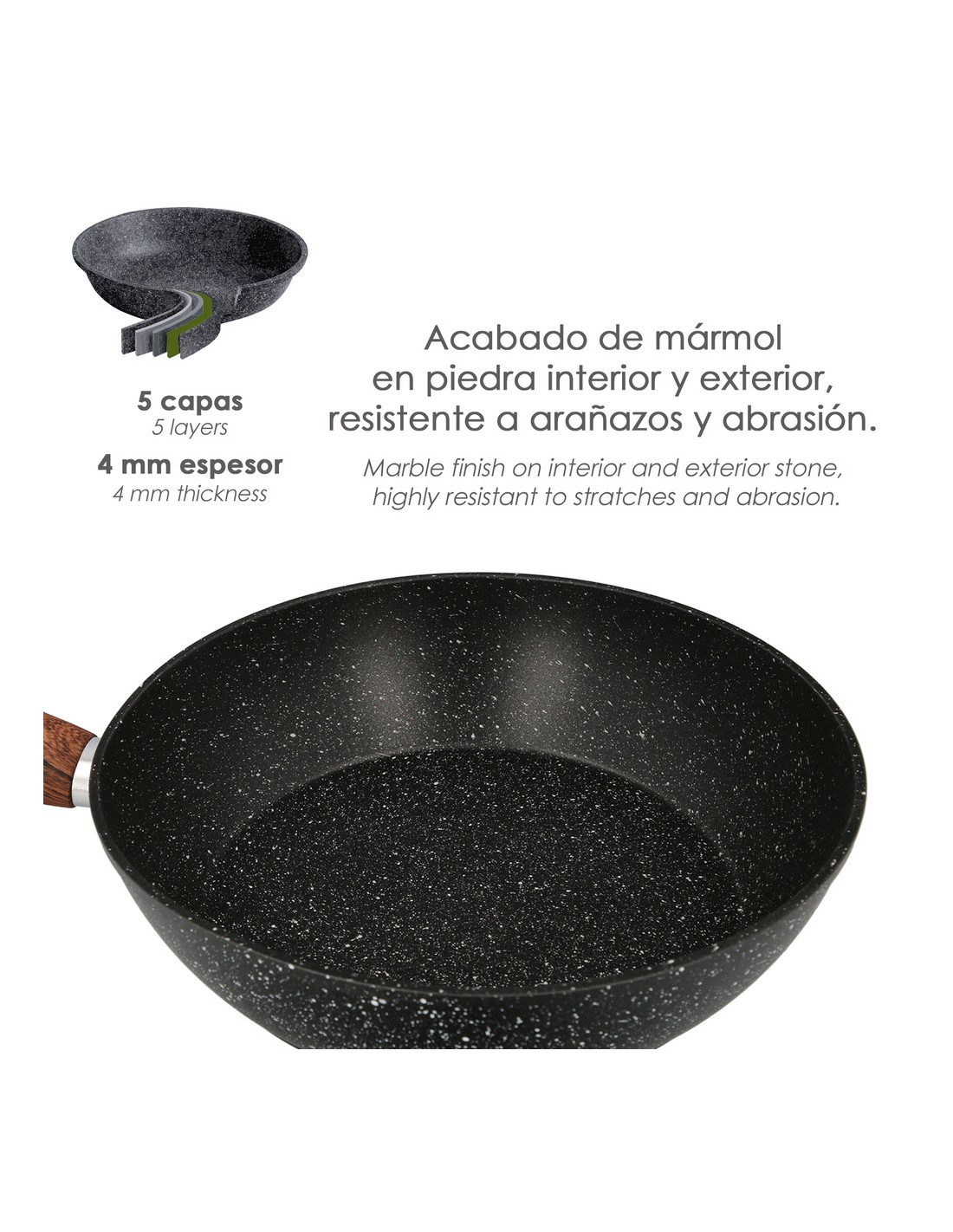 Sarten Aluminio Forjado Antiadherente Ø 24 x 5 cm. Mango Engomado / 5 capas / Acabado Piedra / Apta Para Todo Tipo de Cocinas