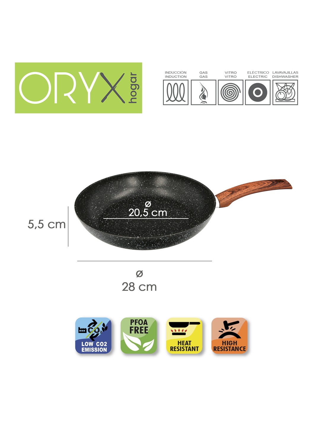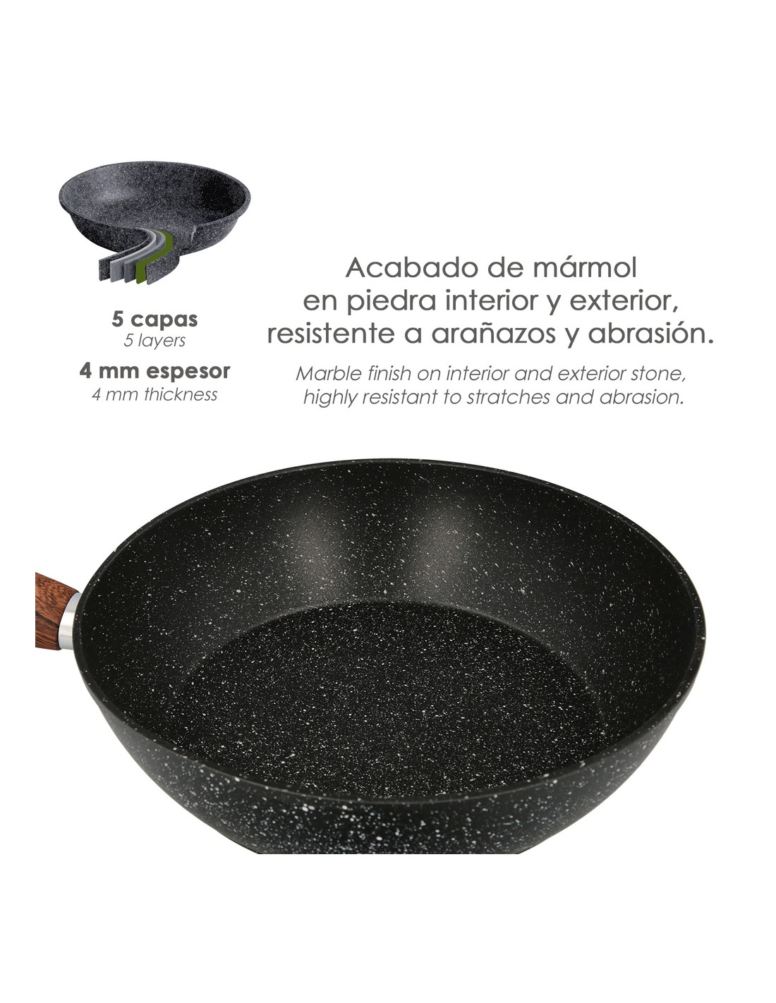 Sarten Aluminio Forjado Antiadherente Ø 28 x 5,5 cm. Mango Engomado / 5 capas / Acabado Piedra / Apta Para Todo Tipo de Cocinas
