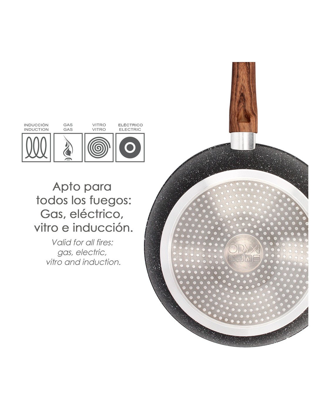 - Sartenes validas para todos los tipos de cocina (gas, eléctrico, vitro e inducción)