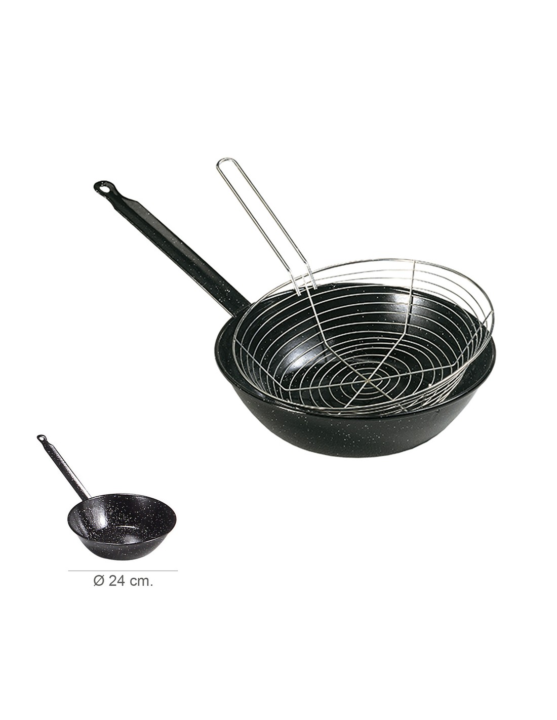 Sarten Esmaltada Con Mango Ø 24 cm. Con Cestillo Freir