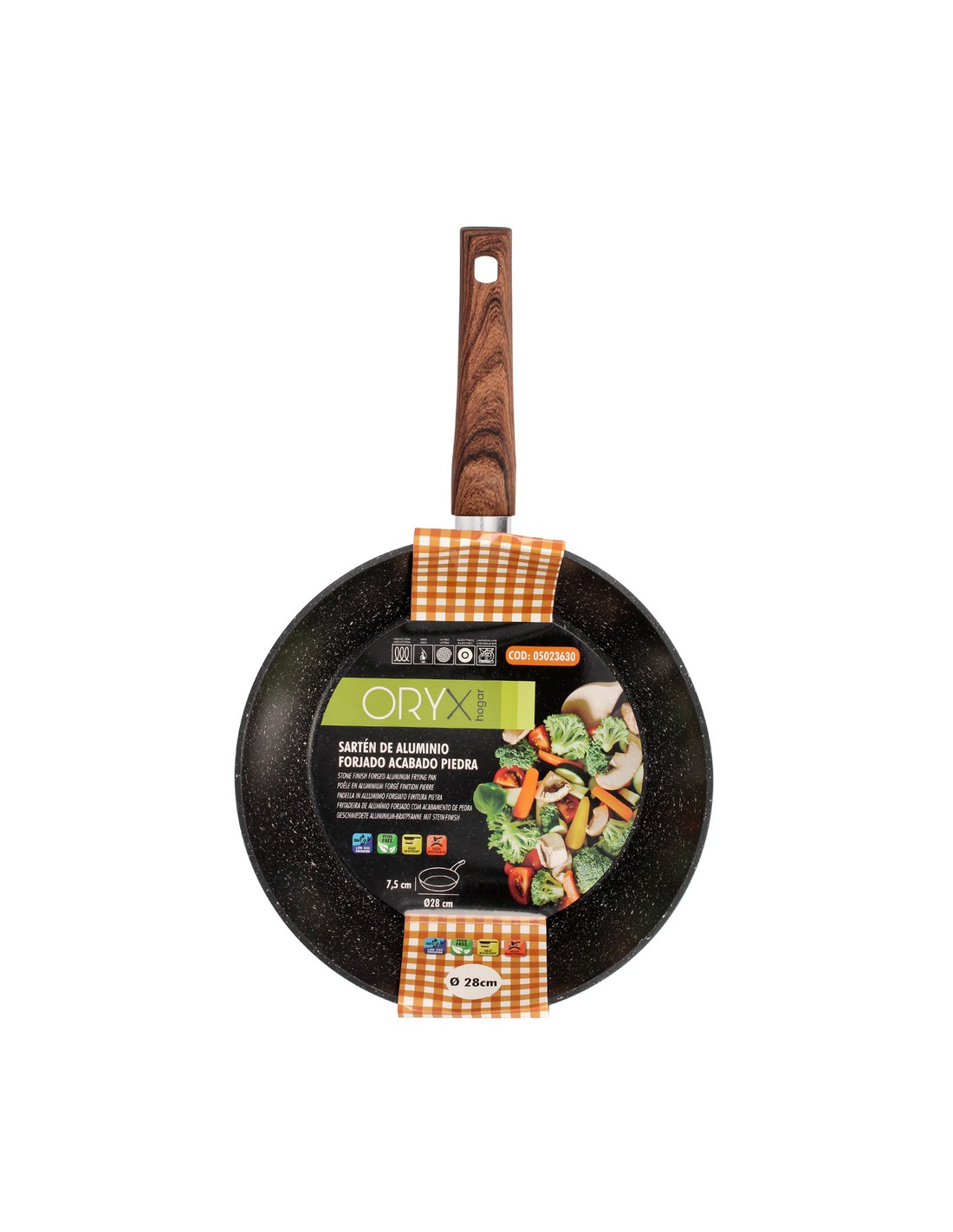 Sarten Honda Aluminio Forjado Antiadherente Ø 28x7,5 cm. Mango Engomado / 5 capas / Acabado Piedra / Para Todo Tipo de Cocinas