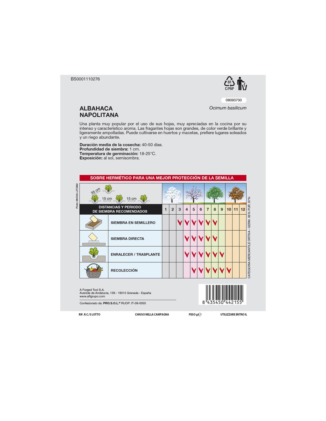 Semillas Aromáticas Albahaca Gigante (5 gramos) Horticultura, Horticola, Semillas Huerto.