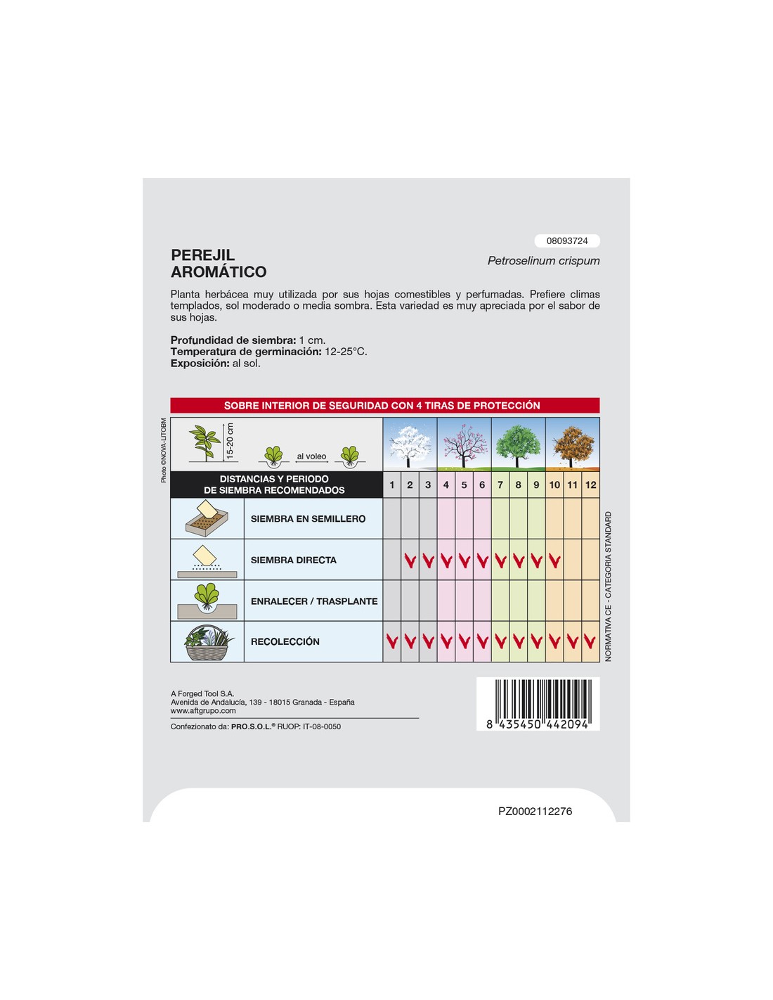 - Temperatura de germinación: 12-25 ºC.
