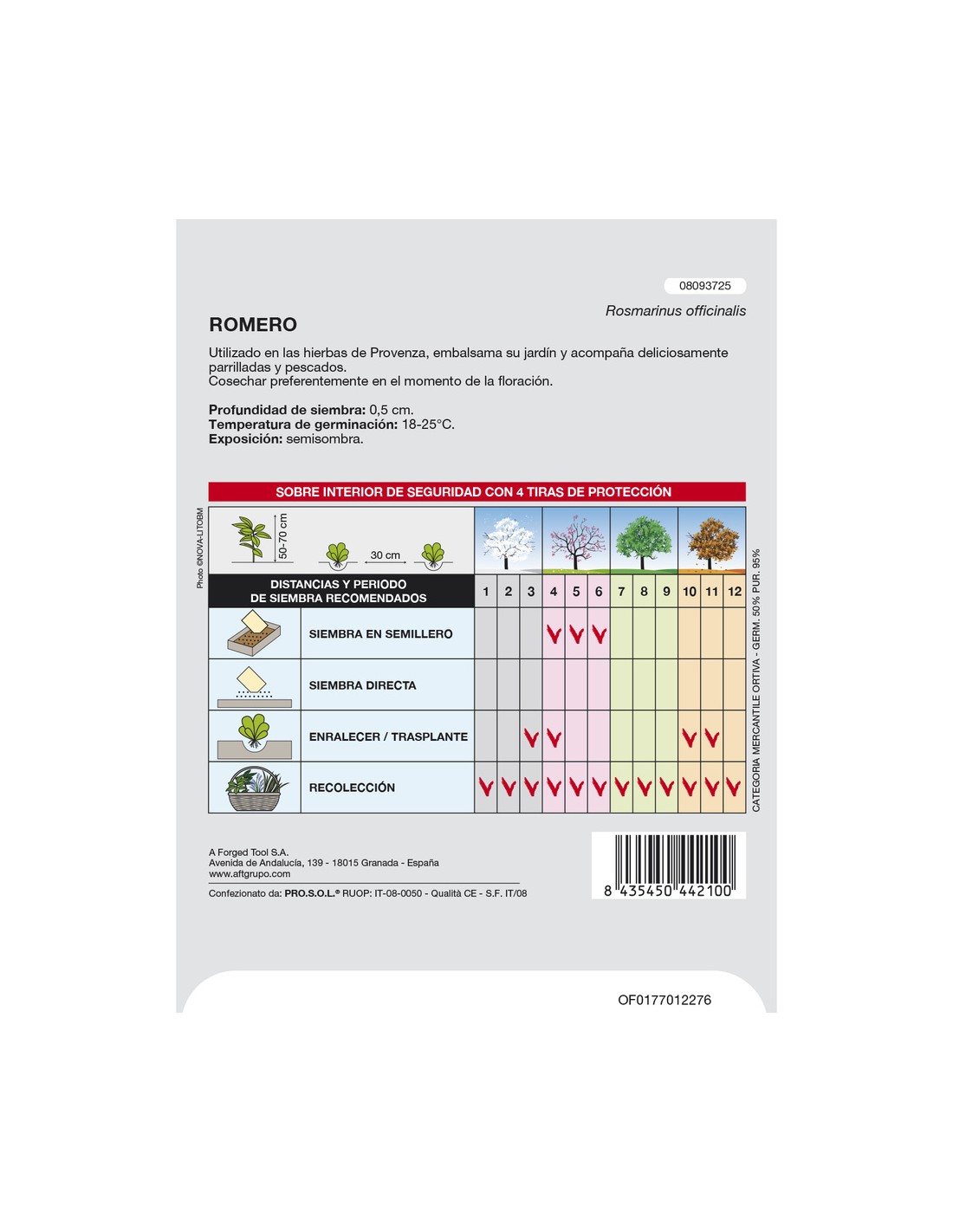 - Temperatura de germinación: 18-25 ºC.
