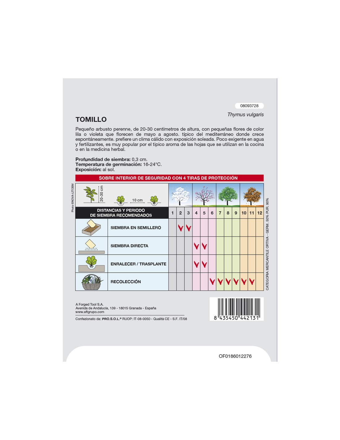 - Temperatura de germinación: 16-24 ºC.
