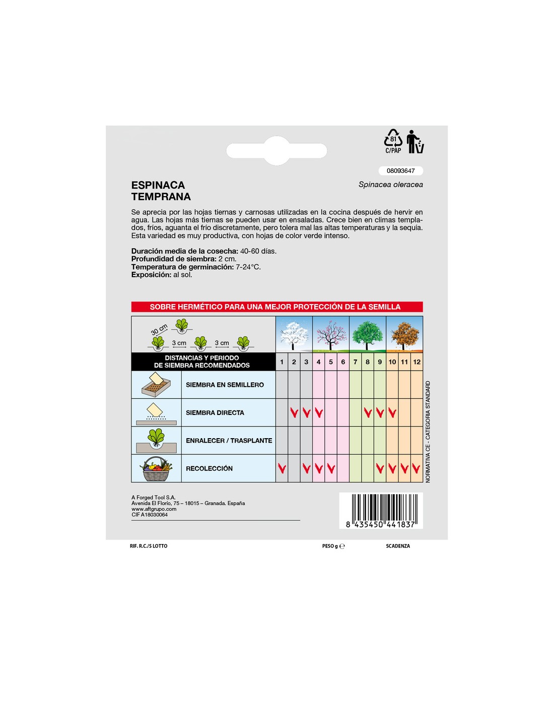 Semillas Espinaca Temprana (8 gramos) Semillas Verduras, Horticultura, Horticola, Semillas Huerto.