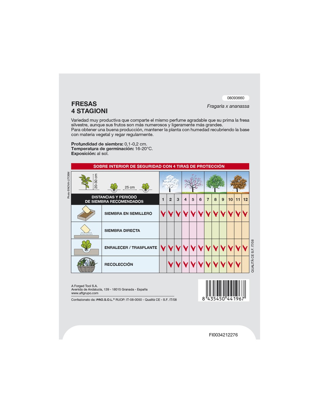 - Variedad muy productiva que comparte el mismo perfume agradable que su prima la fresa silvestre, aunque sus frutos son más numerosos y ligeramente más grandes.