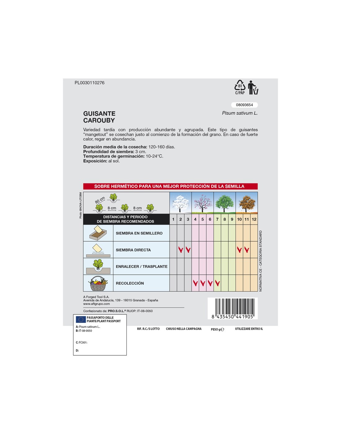 - Temperatura de germinación: 10-24°C.