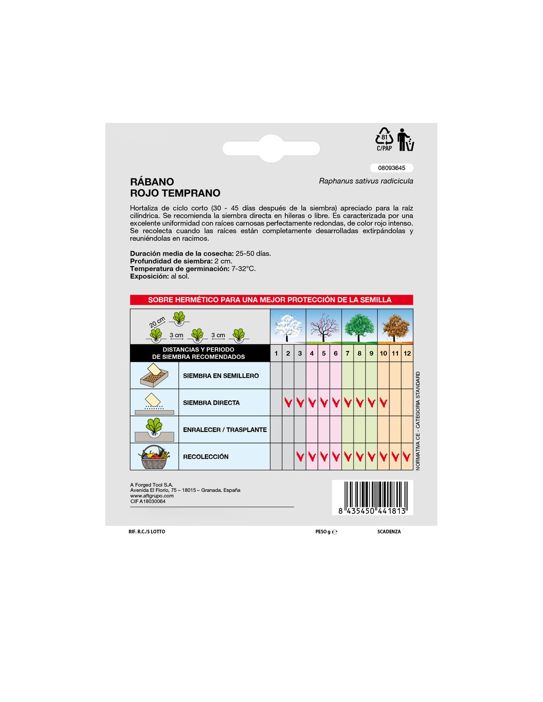 - Temperatura de germinación: 7-32 ºc.