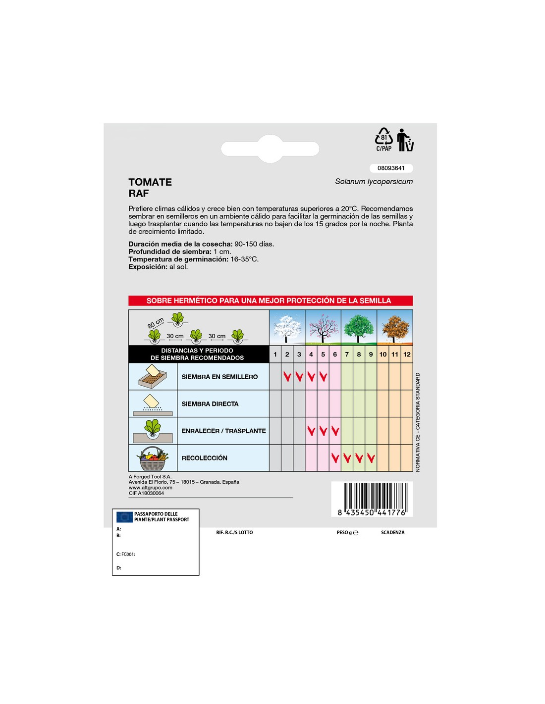 Semillas Tomate Raf (1.5 gramos) Semillas Verduras, Horticultura, Horticola, Semillas Huerto.