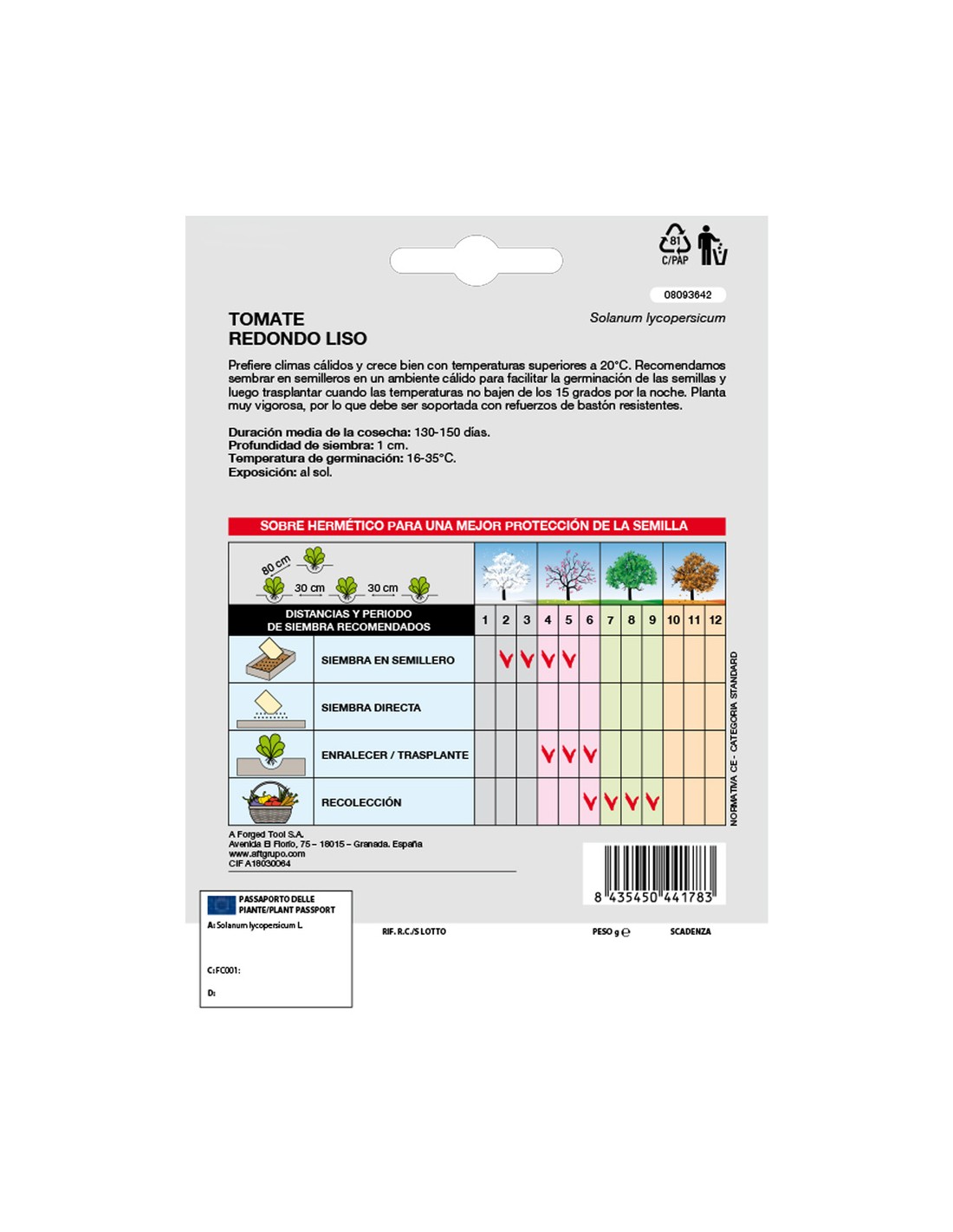 - Temperatura de germinación: 16-35 ºC.