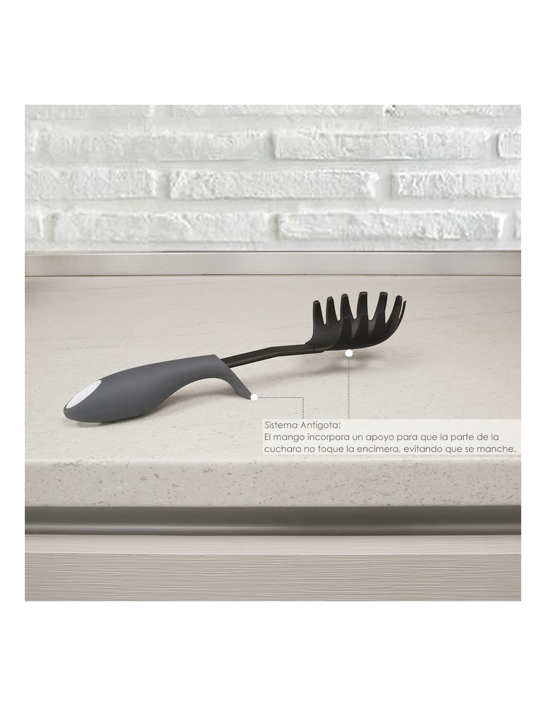 Cuchara Pastas Espaguetis Nylon Con Mango Antigotas Engomado 31,5 x 6 cm.
