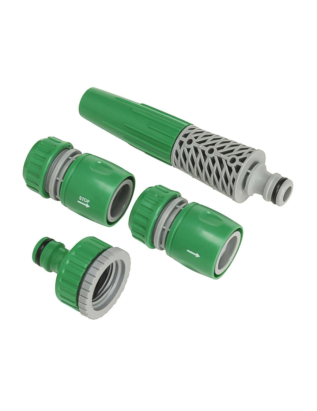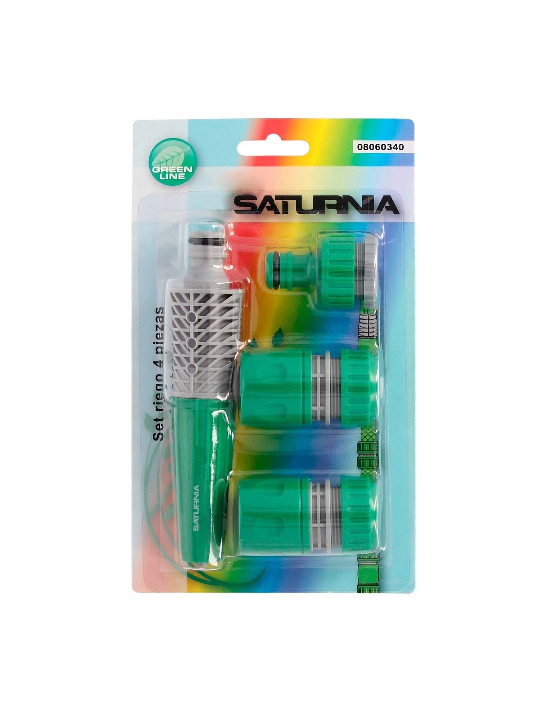 Set riego plastico Saturnia - 4 piezas. - Realiazado en plastico. - Ideal para trabajos de jardineria. - articulo tambien conocido como lanzriegos, conector manguera, adaptador manguera