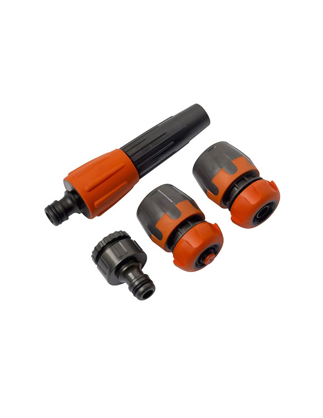 - Incluye un lanzarriegos, dos conectores de manguera 1/2" (uno con funcion stop) y un adaptador de grifo.