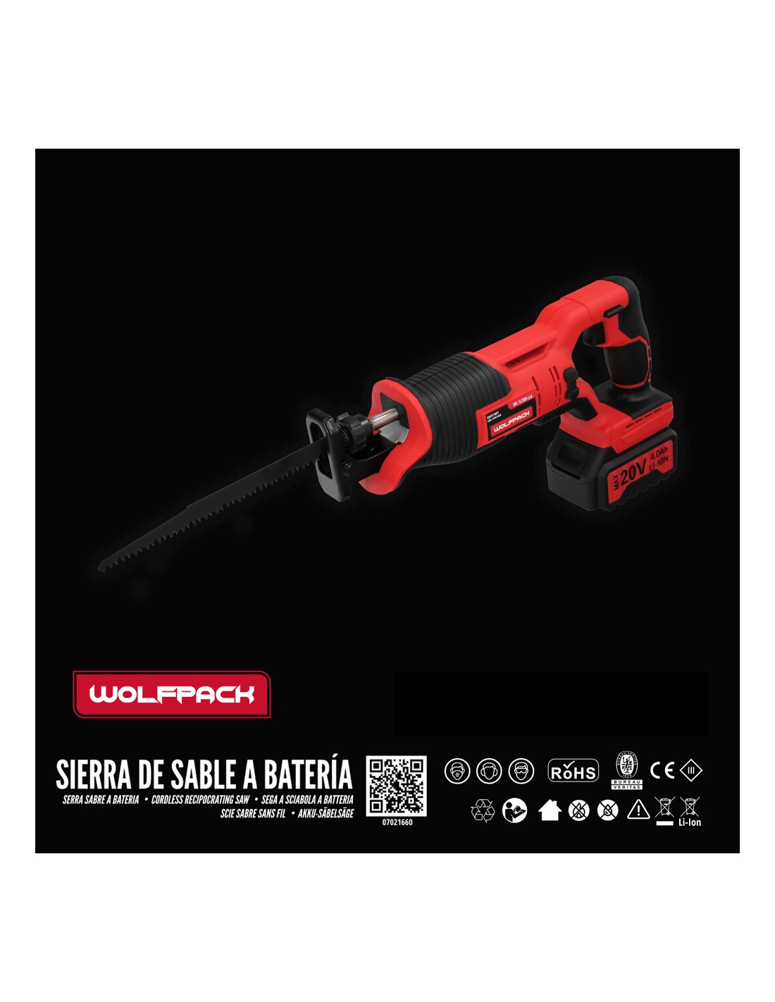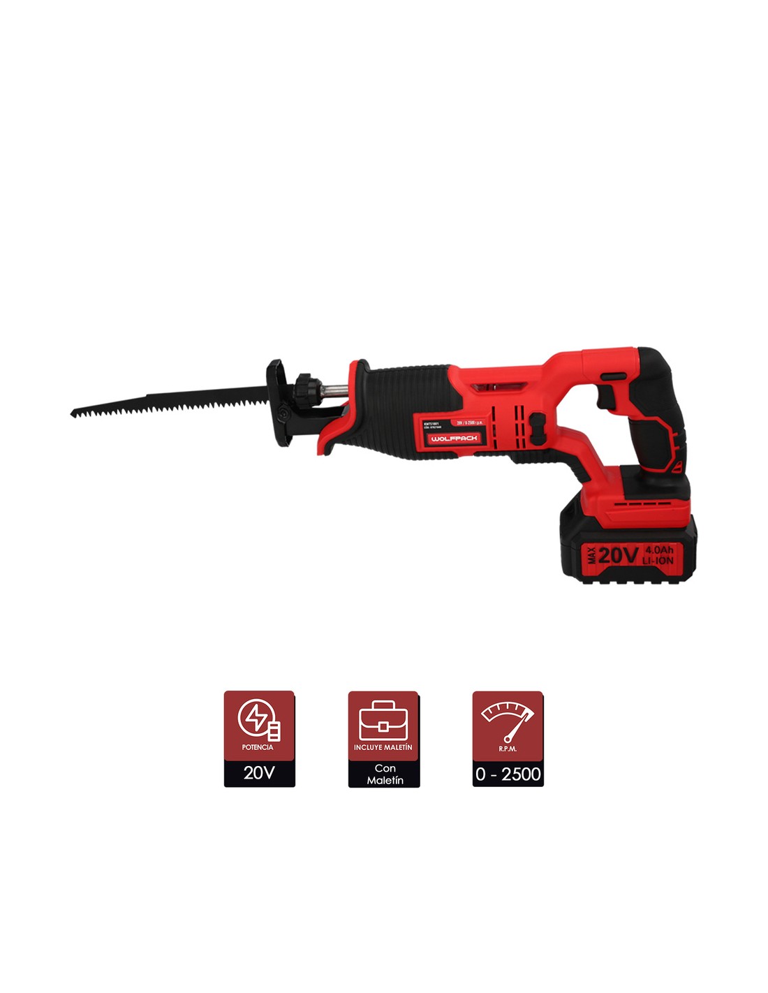 Sierra De Sable 20 V. Bateria 4 Ah. Cambio Rapido de Hoja. Madera 100 mm. / Acero 6 mm.