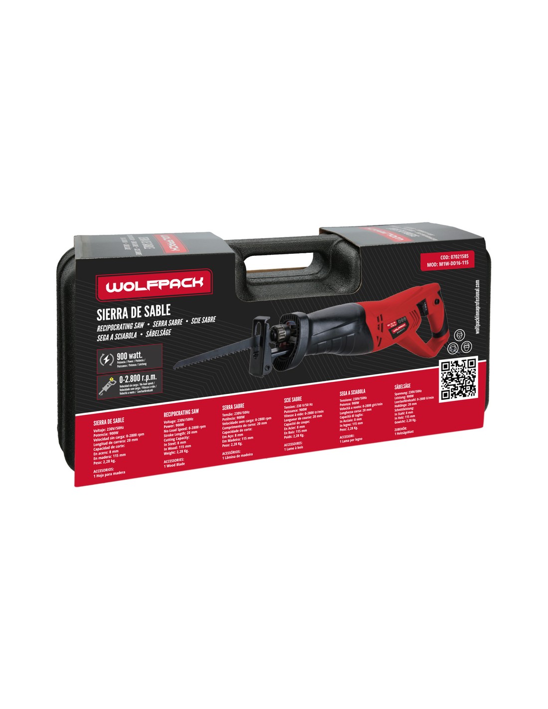 Sierra De Sable 900 Watt. Con Variador de Velocidad. Cambio Rapido de Hoja. Madera 115 mm. / Acero 8 mm.