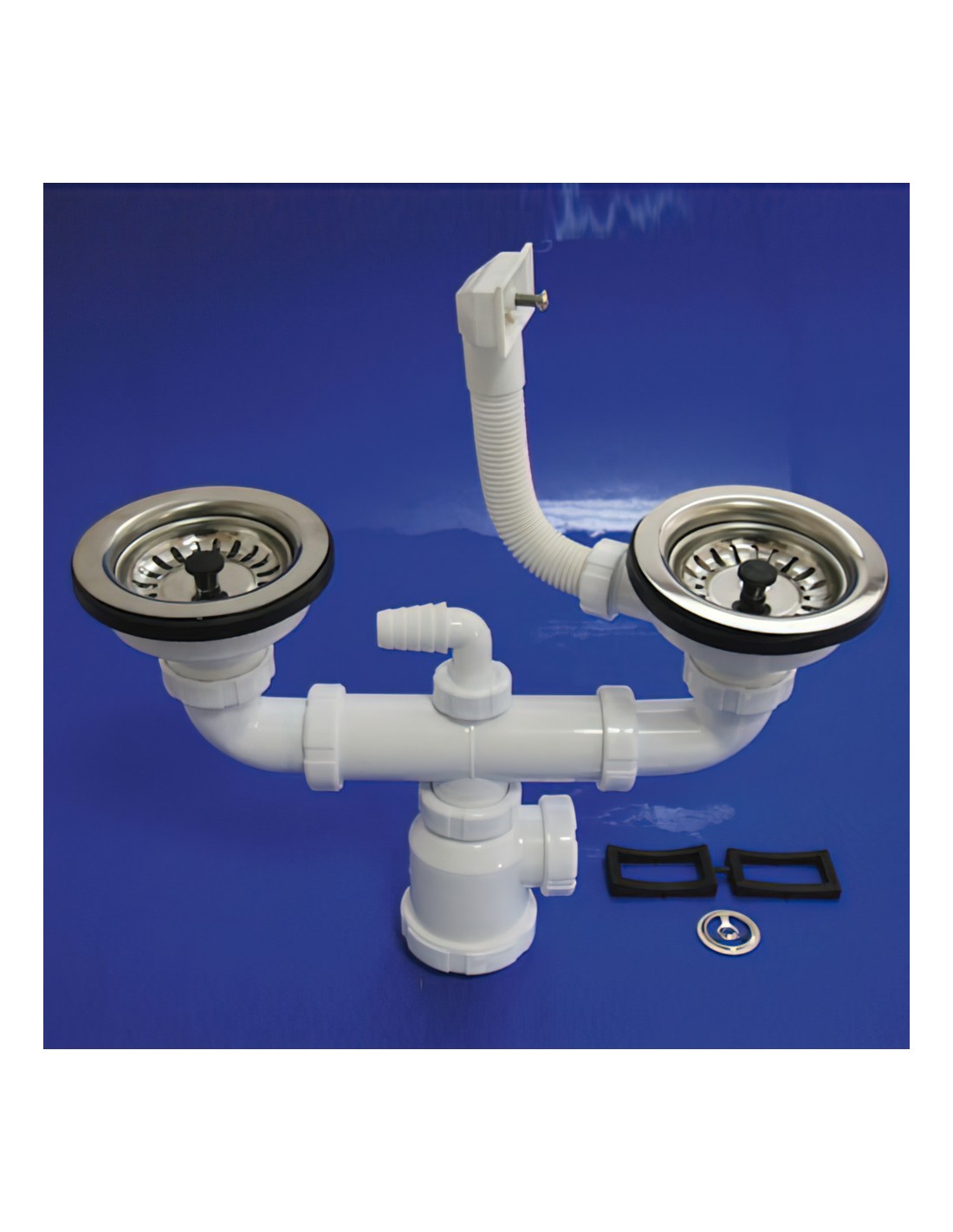 Sifon Doble Con Rebosadero T-44CR 1 1/2 Con válvula Cesta