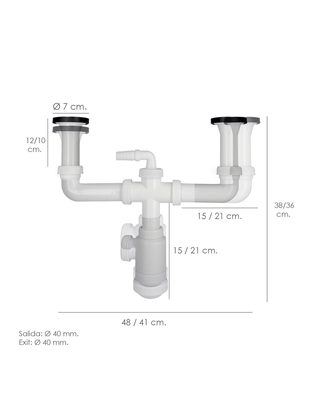 Sifon Doble Con Valvula Extensible 1-1/2" Con Sumideros De Ø 70 mm. Sifon Fregadero Cocina, Sifon Evacuación