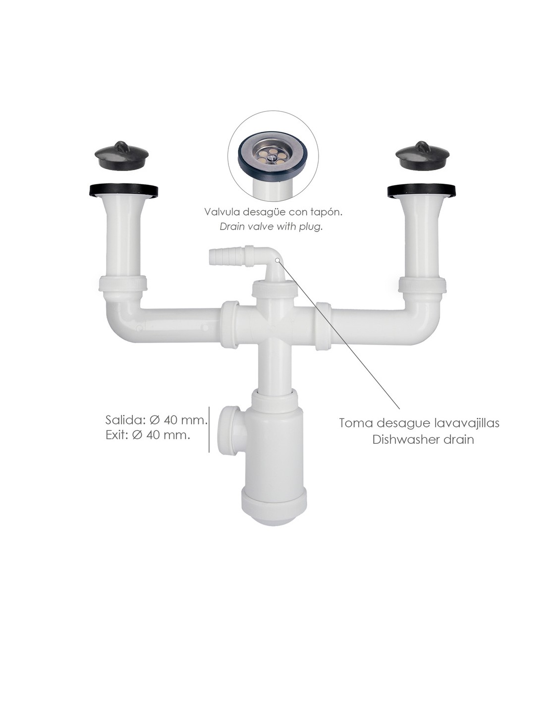 - Permite dos tomas de desagüe.