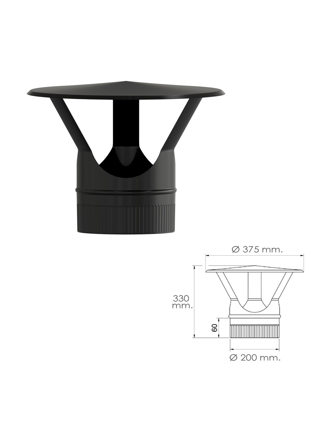 Sombrero Estufa Vitrificado Negro Ø 200 mm. Sombrero Tubo Chimenea, Sombrero Tubo Humo, Sombrero Tubo Calefacción, Sombrero Humo