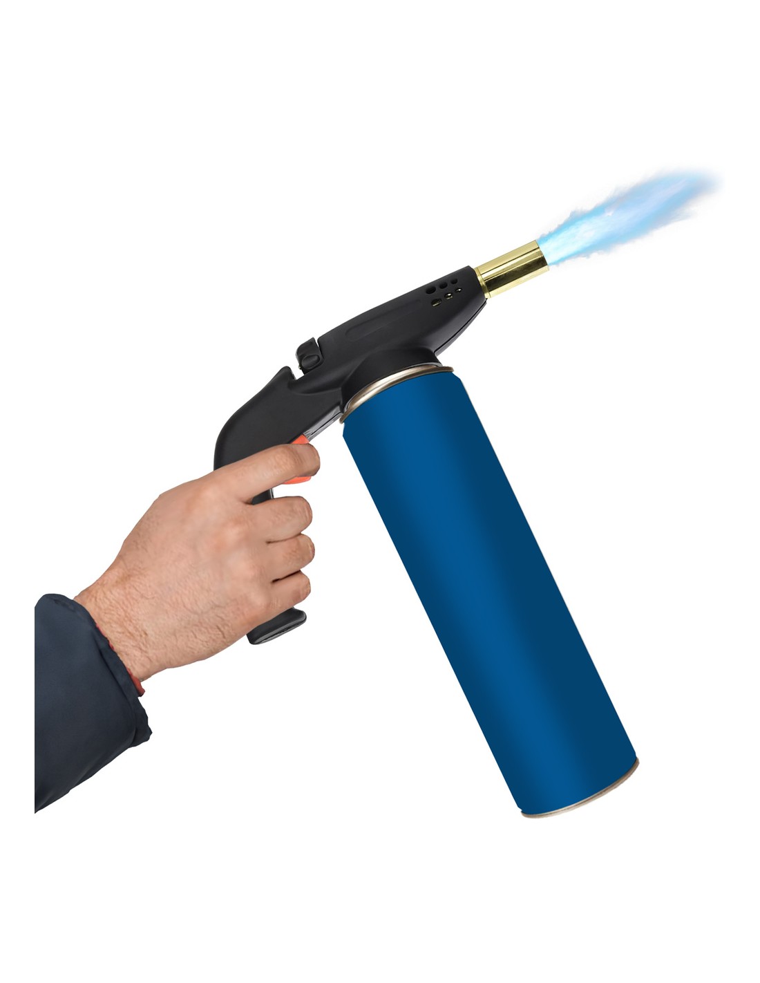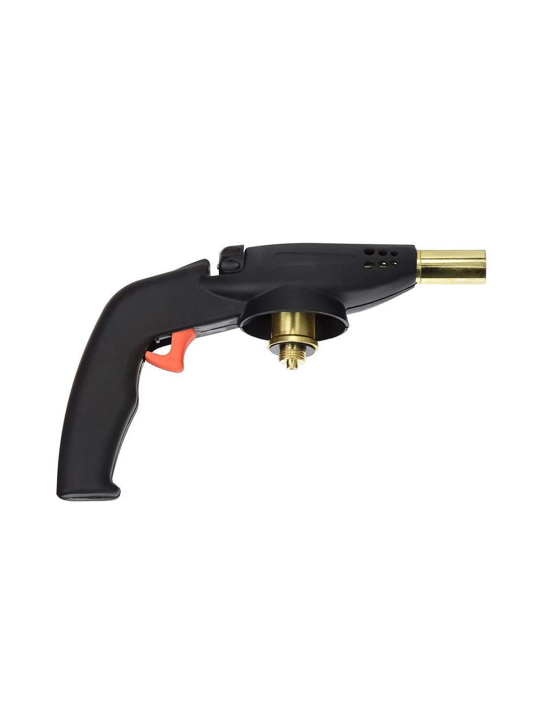 Soplete pistola rosca - Potencia: 2.000 W. - Consumo: 198 g/hora - Para Bombona: de gas butano a rosca de 0,5 kg. (No incluida) - Encendido piezo electrico.