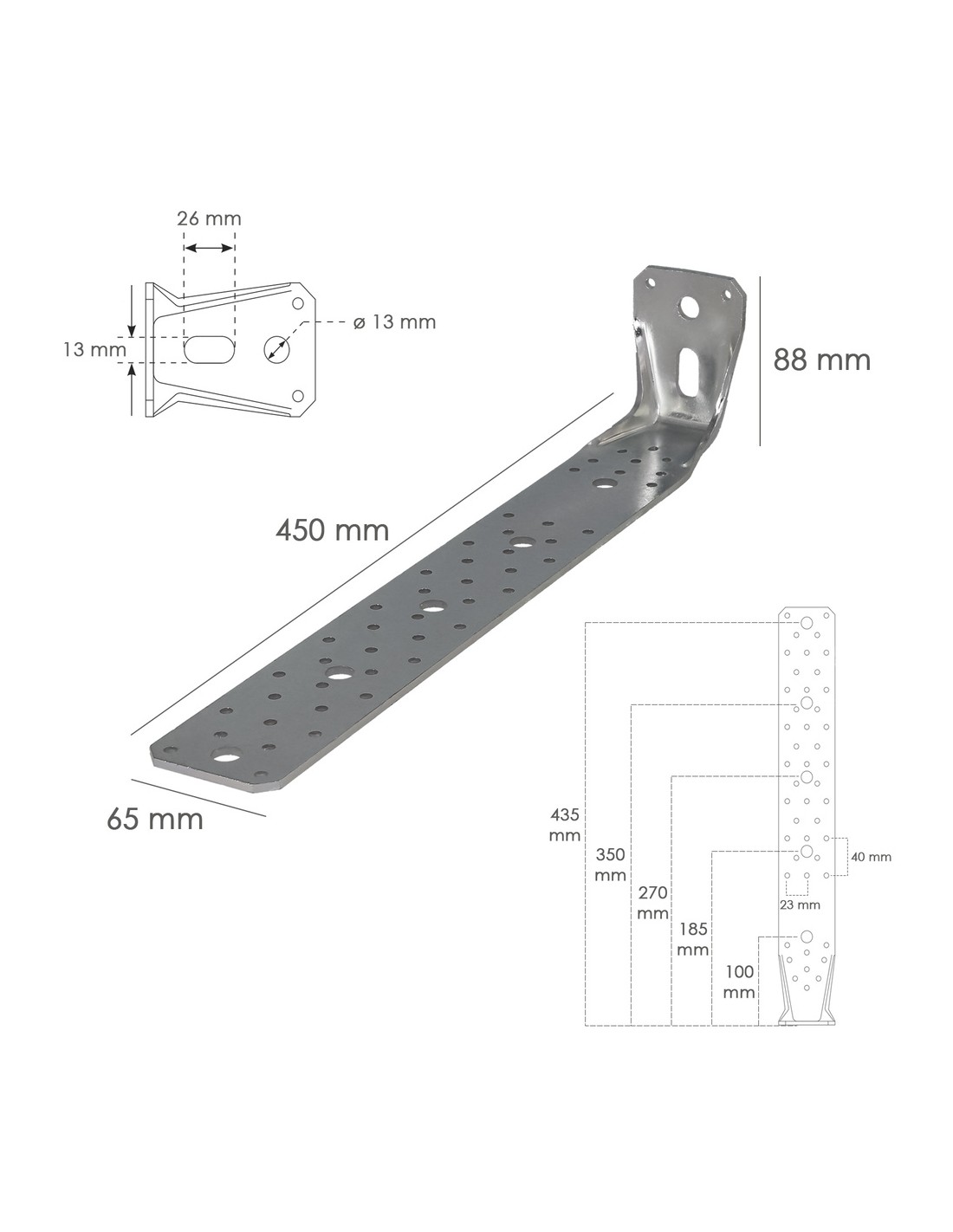 Soporte Para Madera Con Angulo Reforzado 65x88x450 mm. Conector Angular, Escuadra Fijación, Zapata Madera Soporte Pergola Madera