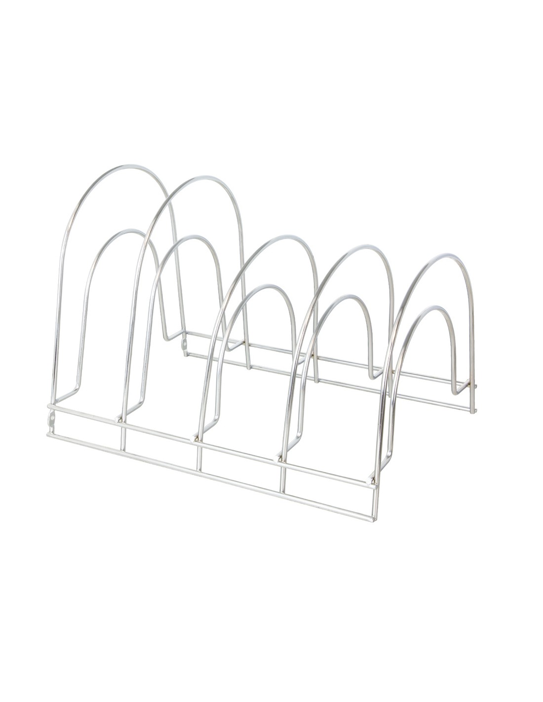 Soporte Vertical 5 Niveles Para Sartenes, Tapaderas o vajilla. Acero Cromado.