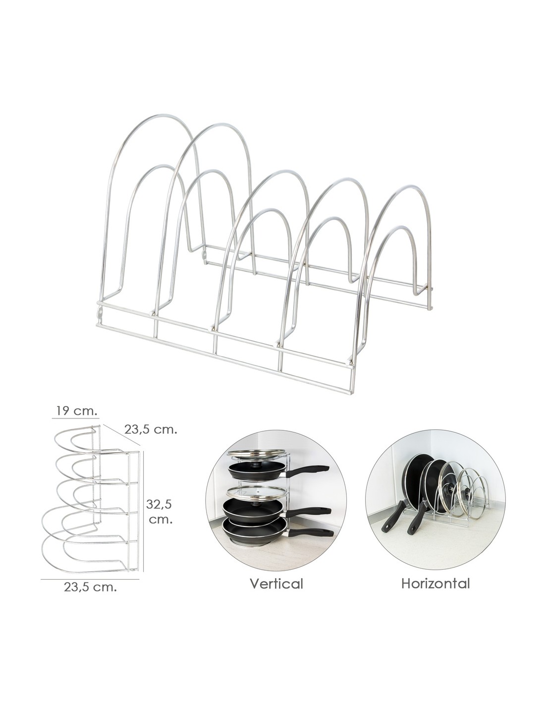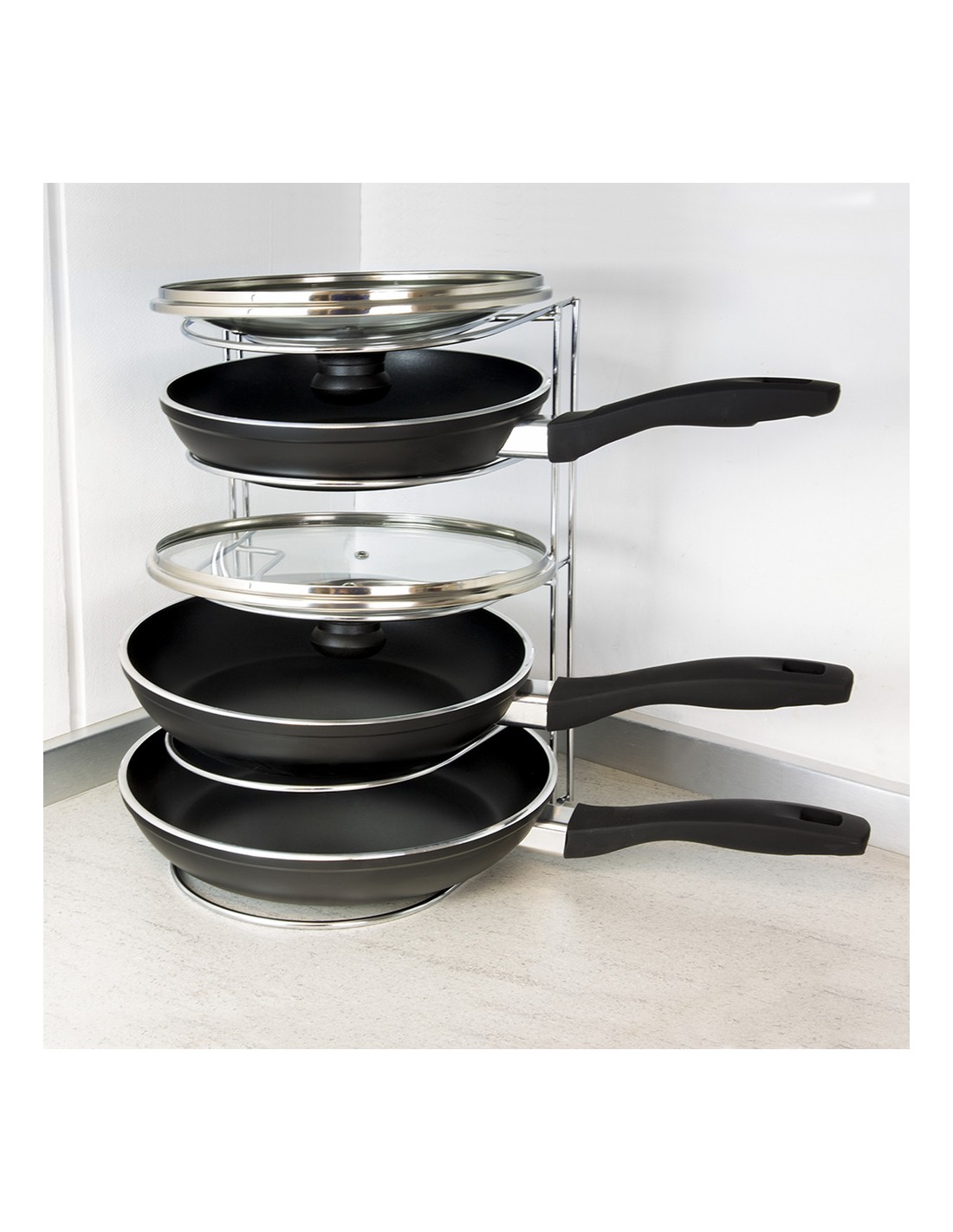 Soporte Vertical 5 Niveles Para Sartenes, Tapaderas, Acero Cromado
