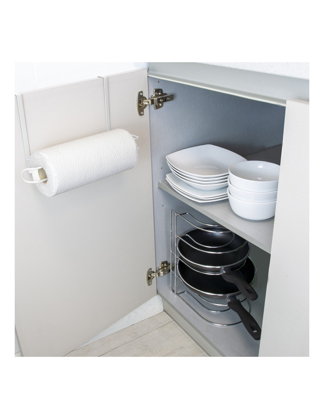 - Al colocar las sartenes en el organizador se evita que rocen unas con otras y que se puedan producir arañazos en el material antiadherente.