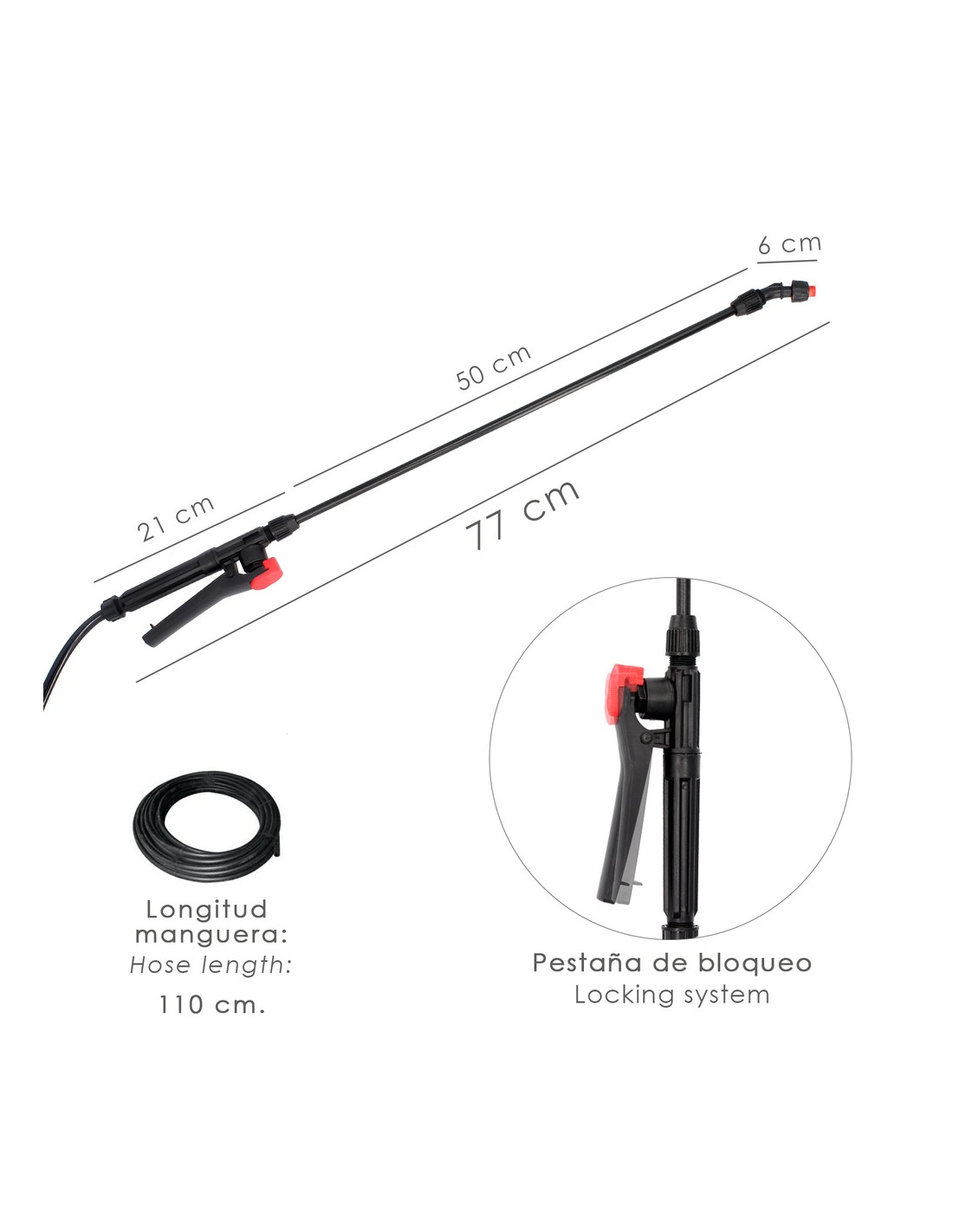 - Lanza con chorro ajustable.