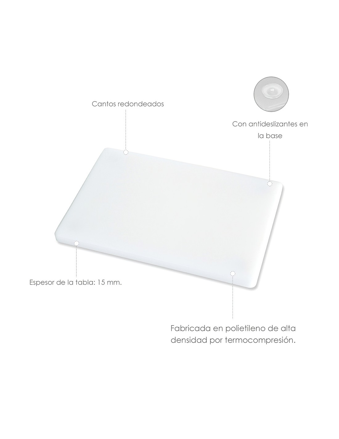 Tabla Cortar Polietileno 30x20x1,5 cm. Color Blanco