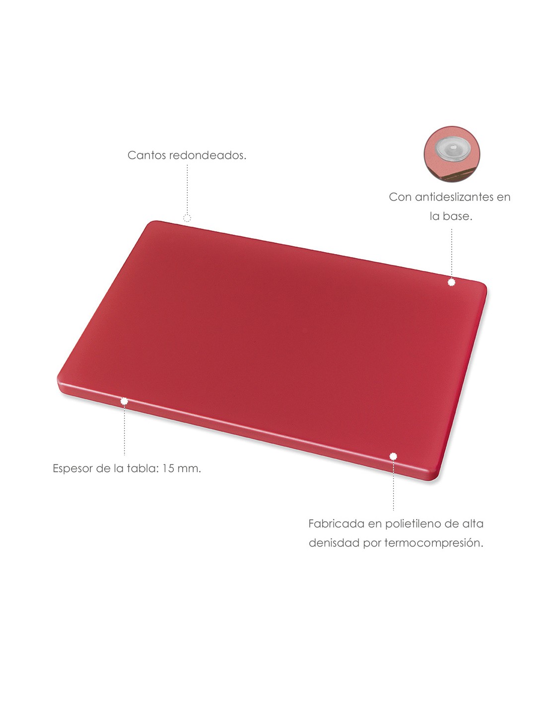 Tabla Cortar Polietileno 35x25x1,5 cm. Color Rojo