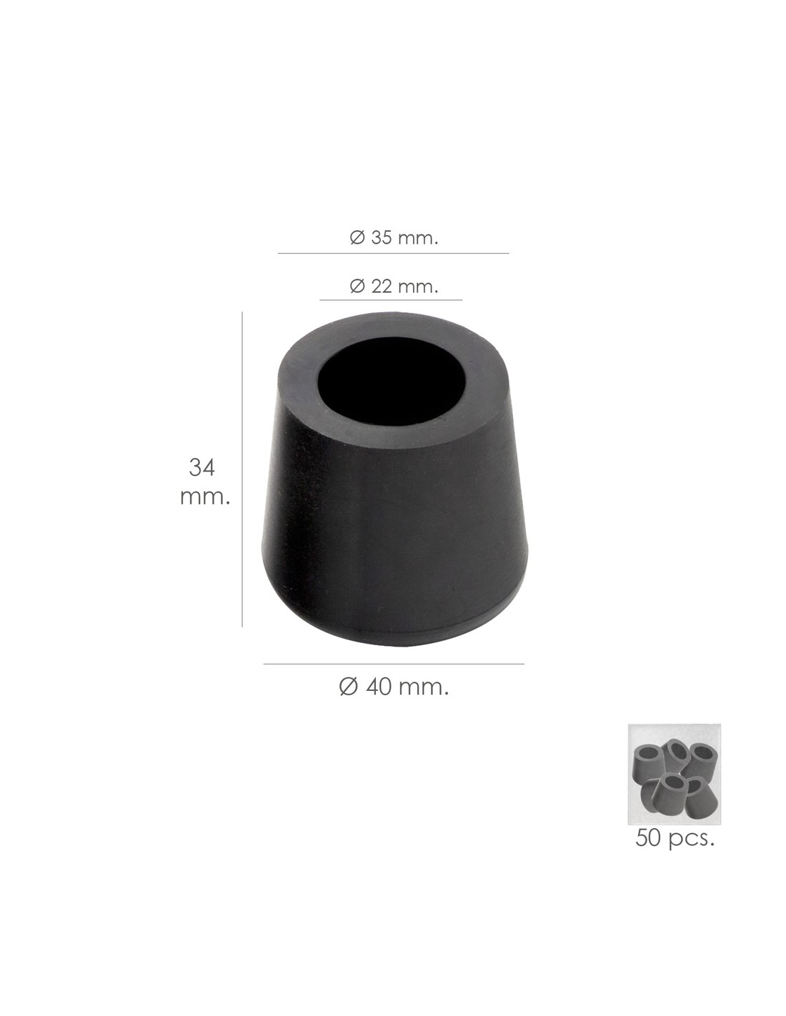 Taco Goma Andador Negro Ø 22mm Con Arandela Interior Bolsa 50 Unidades