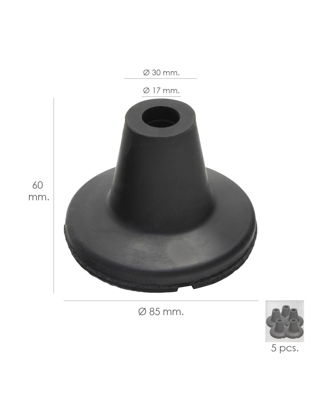 Taco Goma Baston Negro Tubo Ø 19 mm. / Base Ø 85 mm. Tipo Ventosa Bolsa 5 Unidades