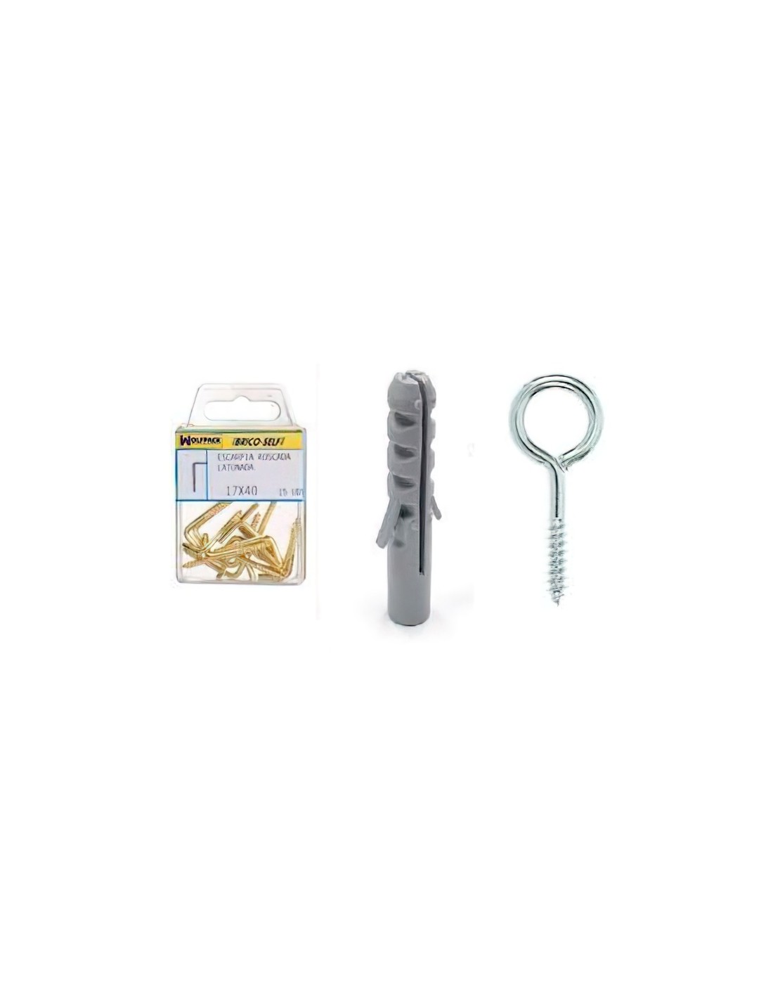 Brico self, Bricoself, Brico-self Tacos nº 6+hembrillas cerradas. - Útil para colgar cuadros en la pared. - Medida: 19 x 60 mm. - Envase de 7 unidades. - Articulo también conocido como: cancamos.