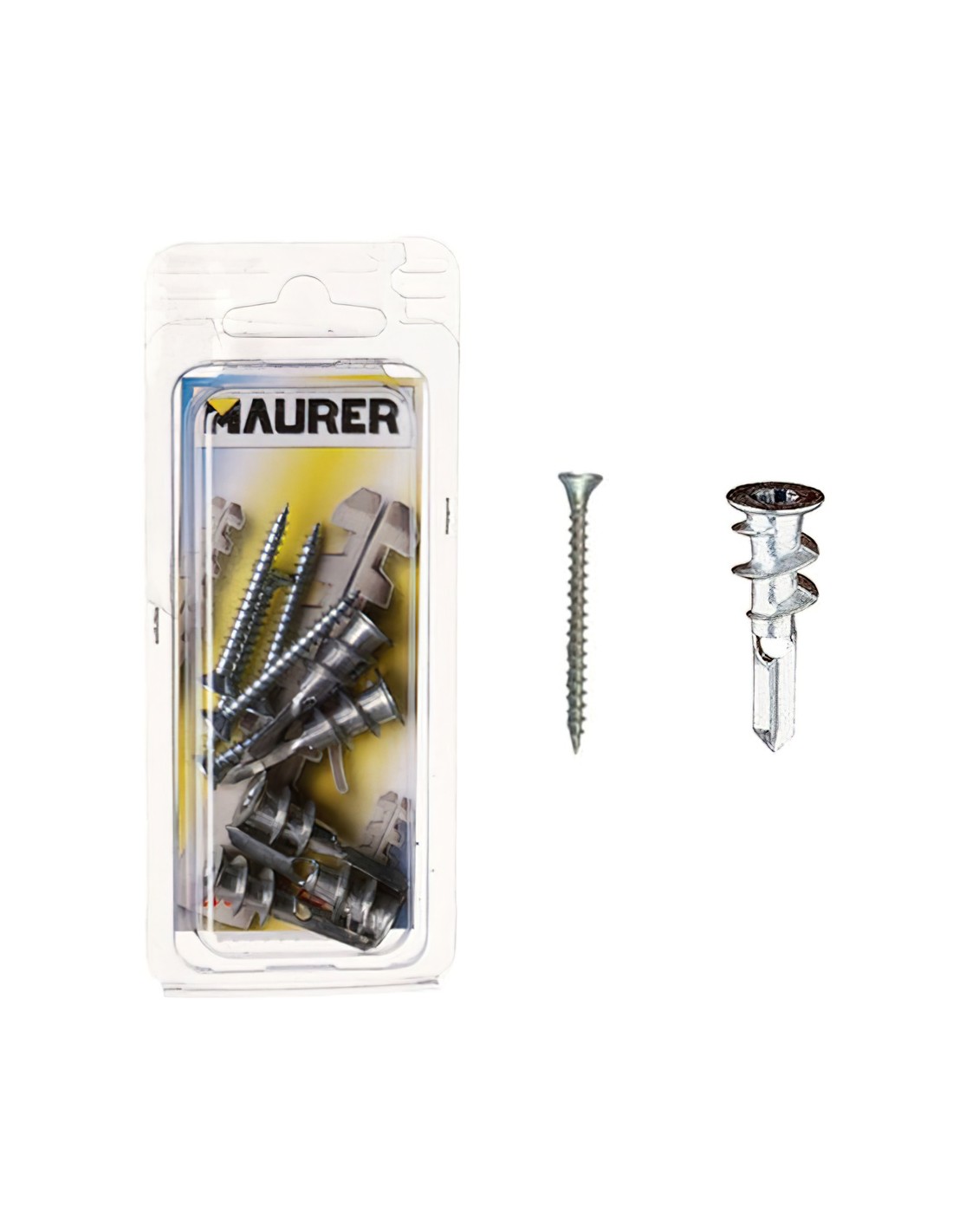 Tacos zamak para carton-yeso con tornillo (5piezas). - Blister de 5 piezas. - El taco zamak para carton-yeso no necesita de taladro adicional. Se autoperfora en la pared. - Alta resistencia y calidad. - Articulo conocido como taco pladur, tornillo pladur.