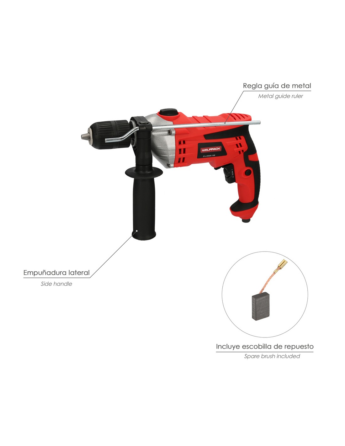 - Con percutor ideal para perforar hormigón, mampostería, paredes, etc.