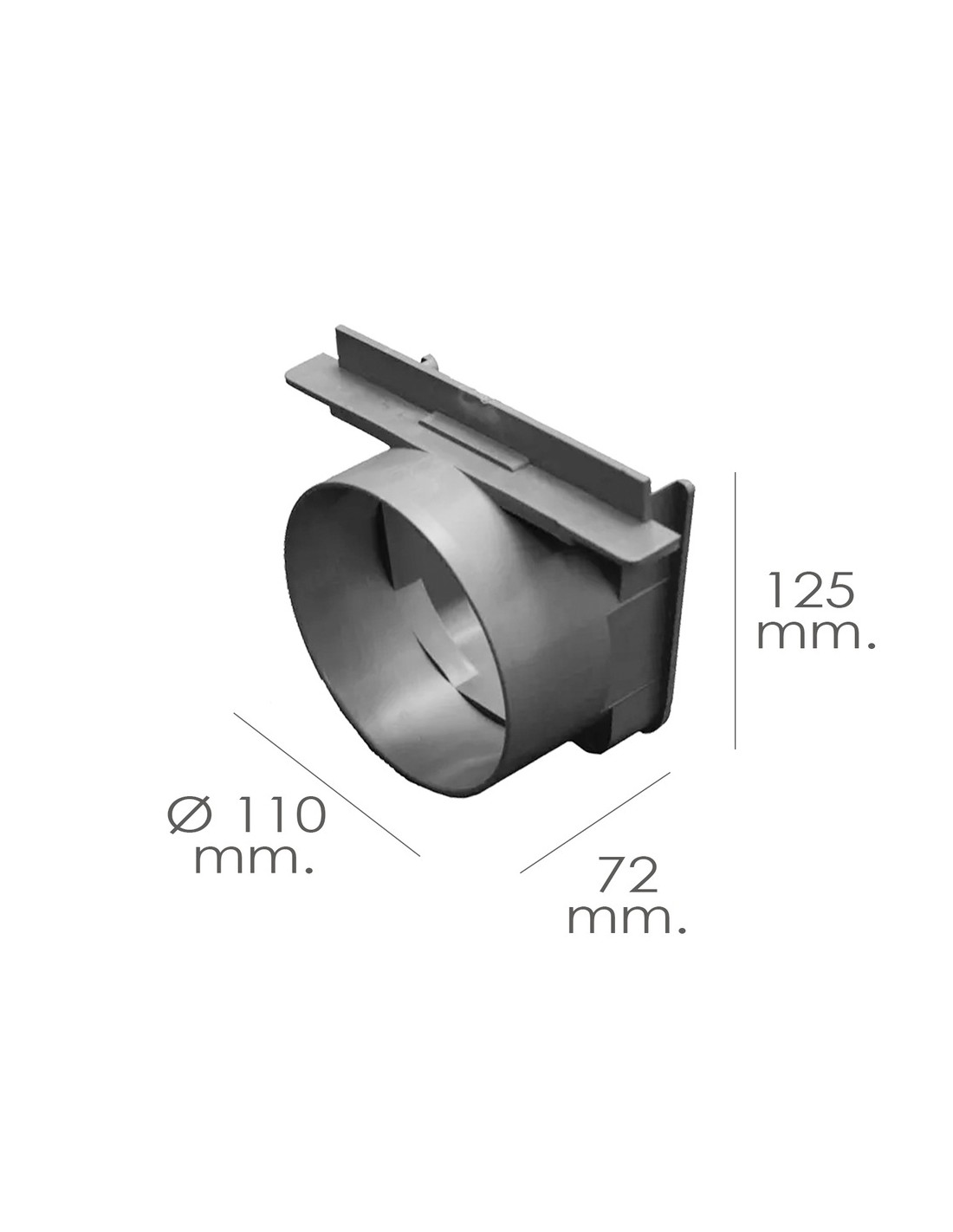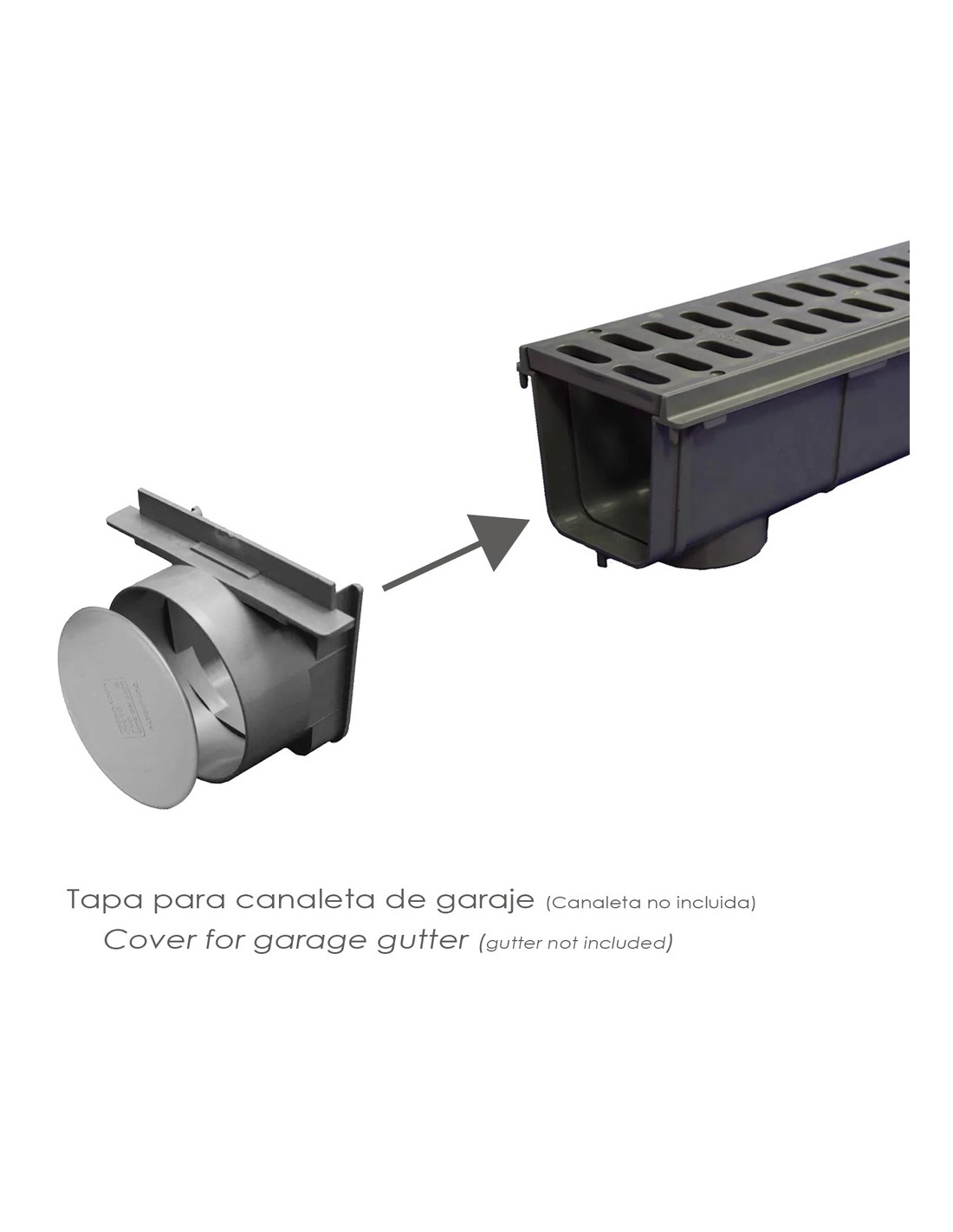 Tapa Para Canaleta Garaje - Con salida para tubos de Ø 110 mm. - Realizado en PVC. - Incluye tapon. - Para canaletas de cota alta. - Valido para canaletas garage T130G / T140 / T135.