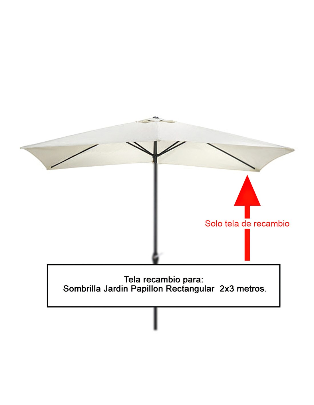 Tela recambio sombrilla rectangular (55174) - Medida: 2x3 metros. - Realizada en poliester. - Color beige - Tela de recambio valida para 08091055 Sombrilla Jardin Papillon Rectangular 2x3 metros.