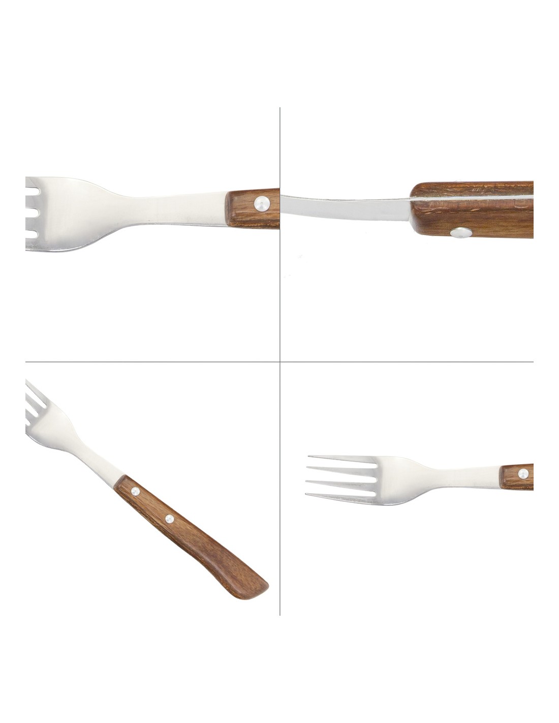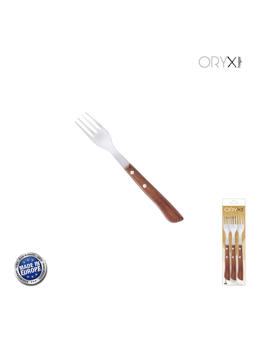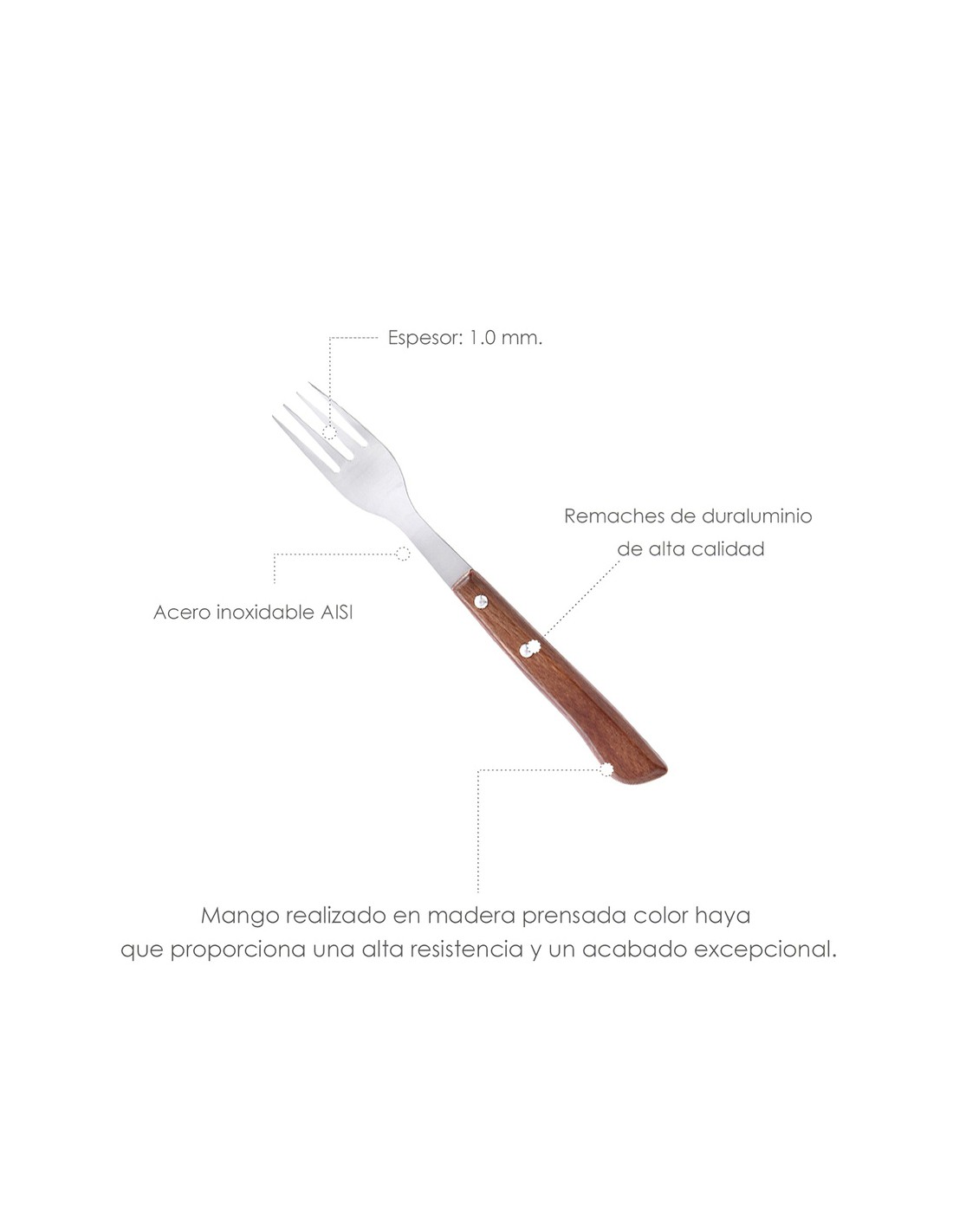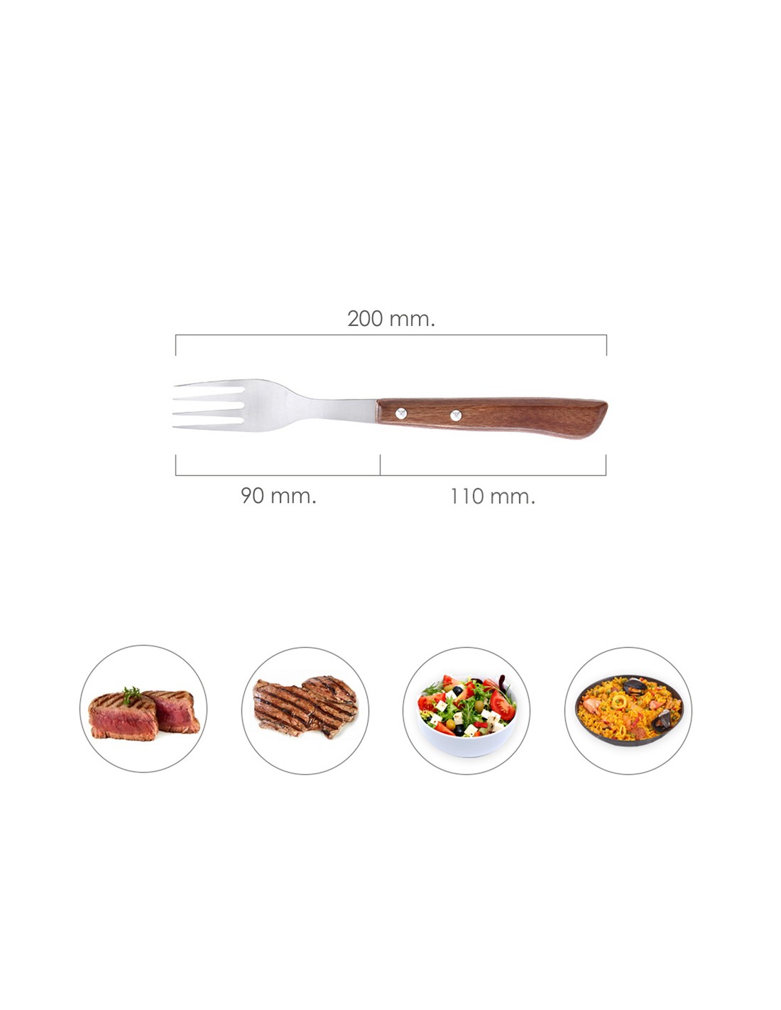 Tenedor Montana Chuletero Acero Inoxidable 9 cm. Mango Madera (Blister 3 Piezas)