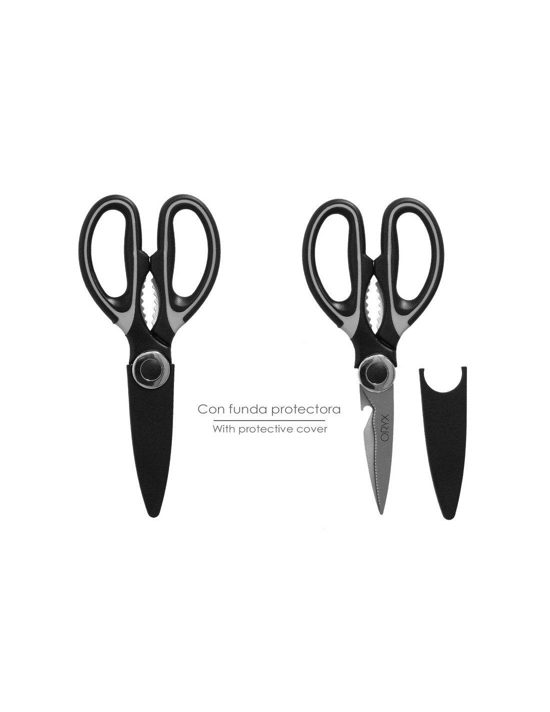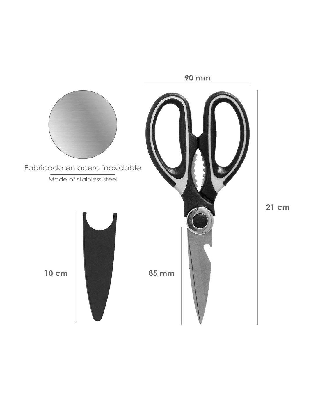 Tijera Cocina Hojas de Acero Inoxidable, Mangos Ergonomicos en TPR Con Funda Protectora