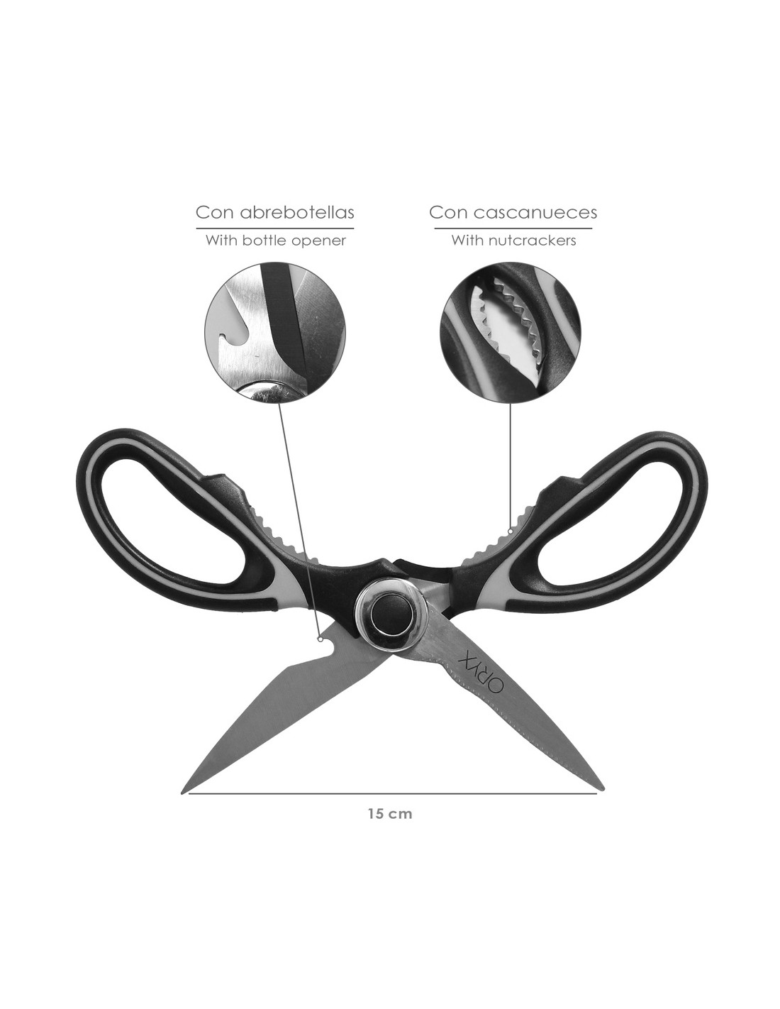 - Articulo conocido como tijeras para alimentos, tijeras de chef, tijeras para cocinar, tijeras multiusos, tijeras con cascanueces, tijera multiusos, alicates marisco.