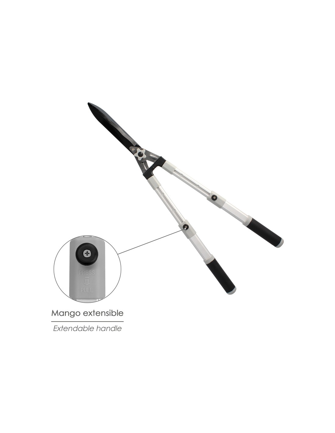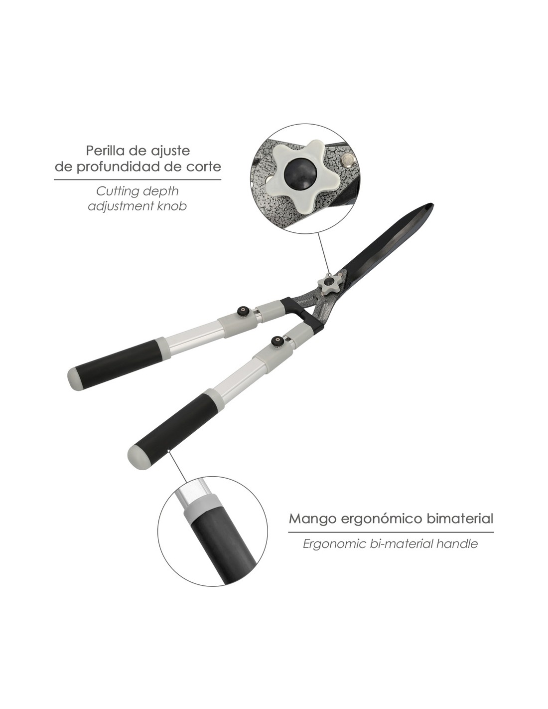 Tijera Podar Setos 2 Manos Aluminio Telescopicas, Hojas Acero Antiadherente, Mango TPR, Ajuste Corte,