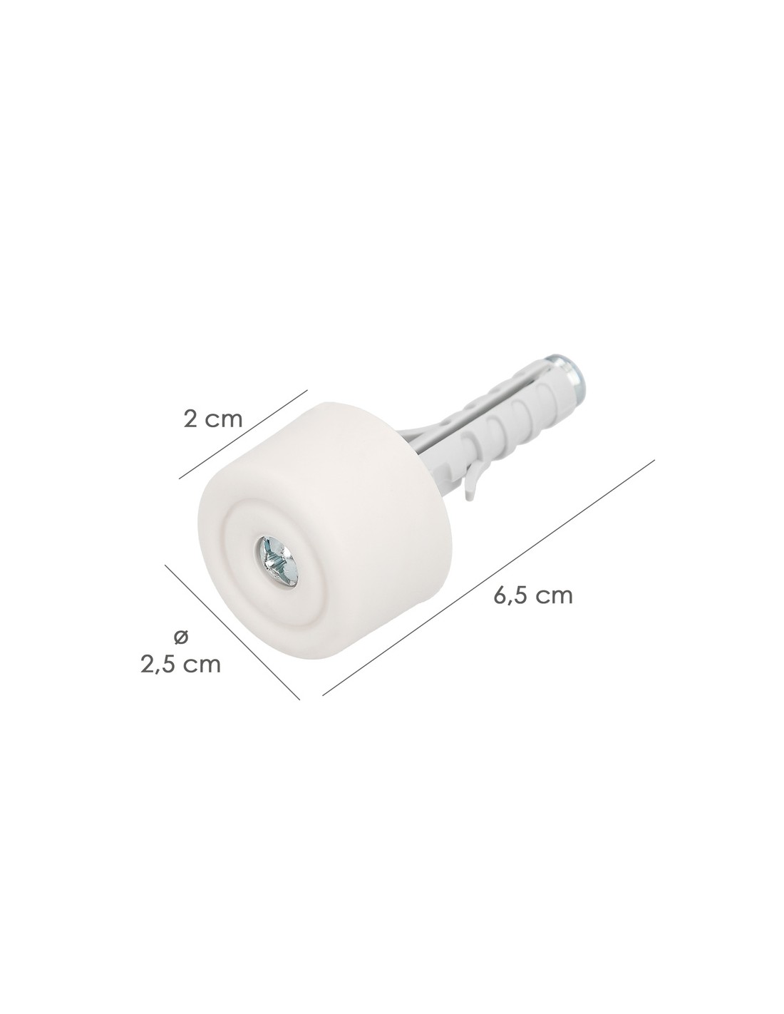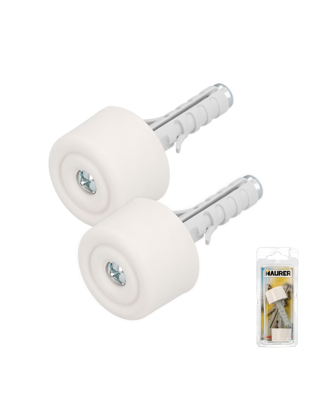 Tope puerta con taco nylon blanco blister 2 piezas.