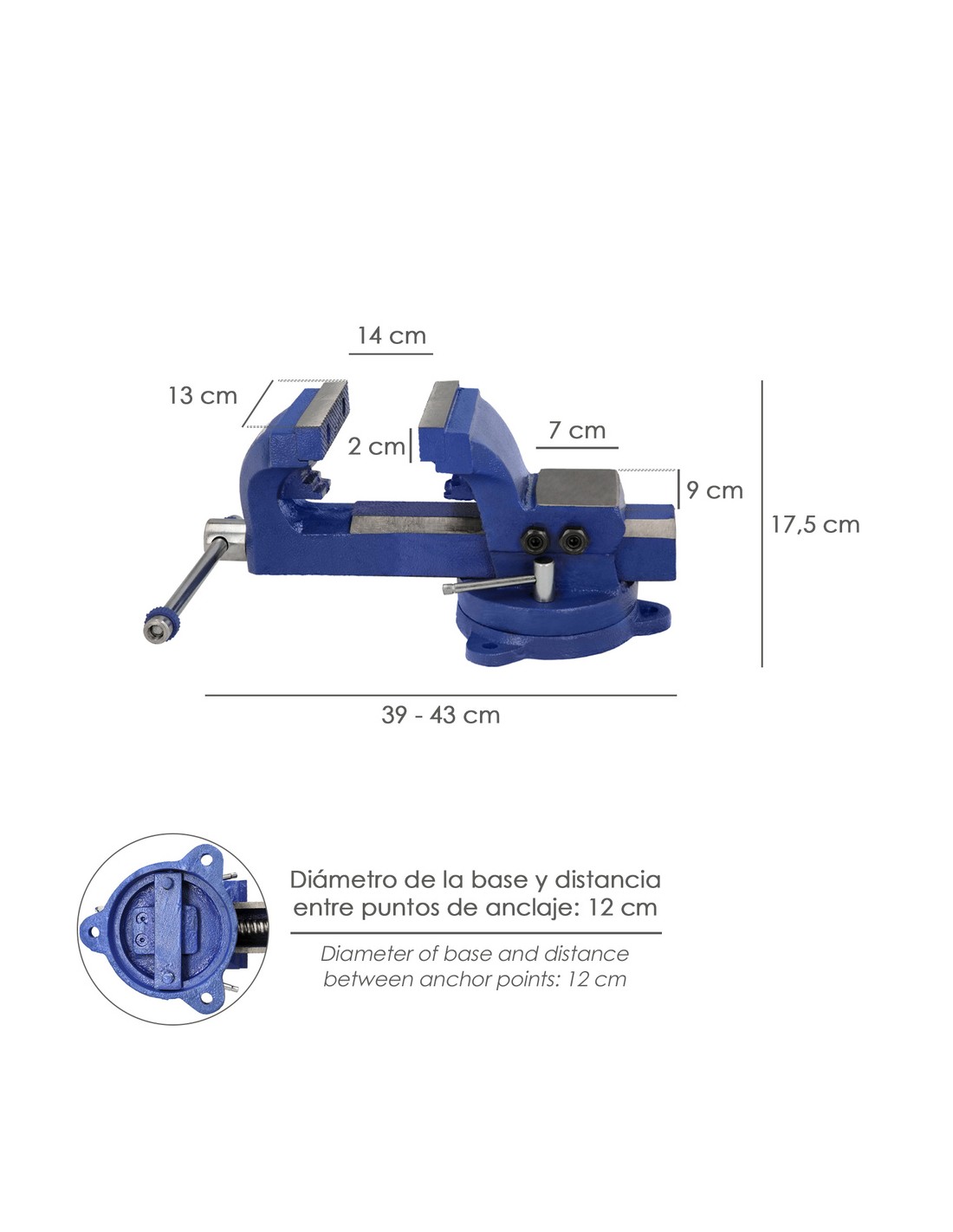 - Articulo conocido como tornillo banco paralelo, mordaza de mesa, tornillo taller, tornillo banco tubos, banco de mesa, banco de mesa giratorio, tornillo sujeción, abrazadera de banco.